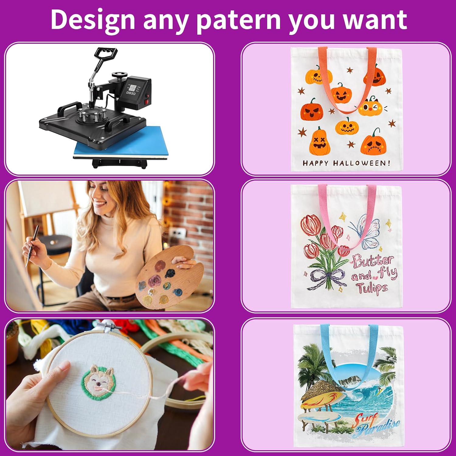 - SUITABLE for DIY: You’re free to create whatever look you like on these canvas bags. they support thermal transfer printing and you can paint or embroider on them. enjoying the fun of DIY and showing your own styles