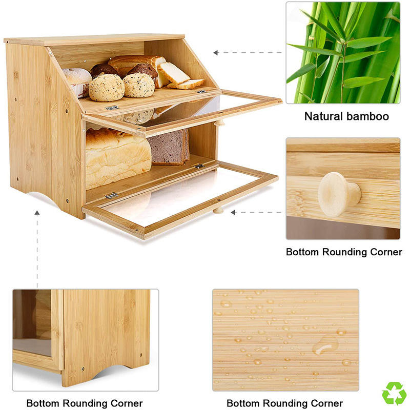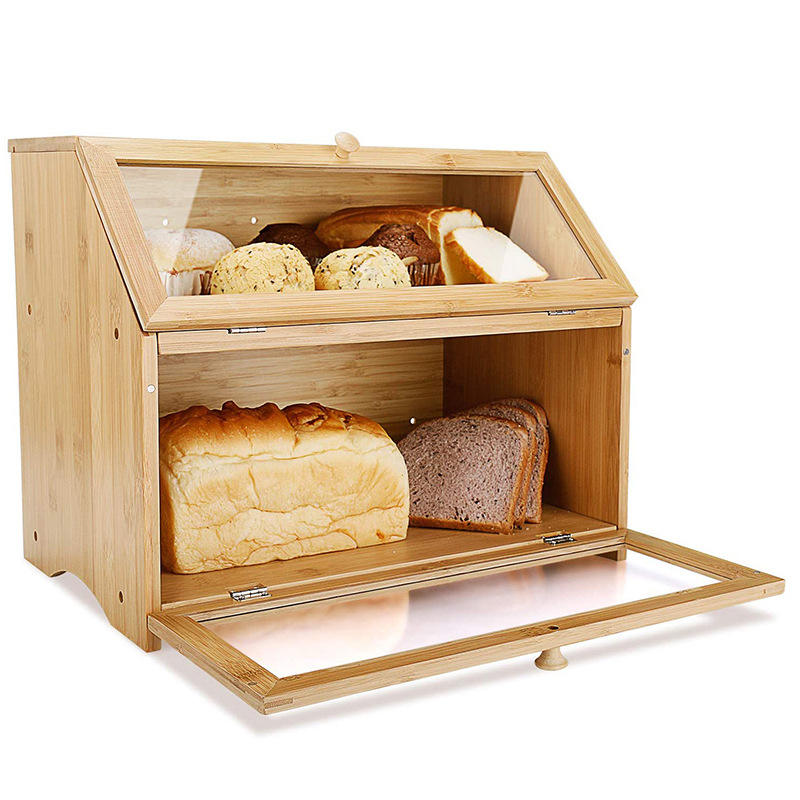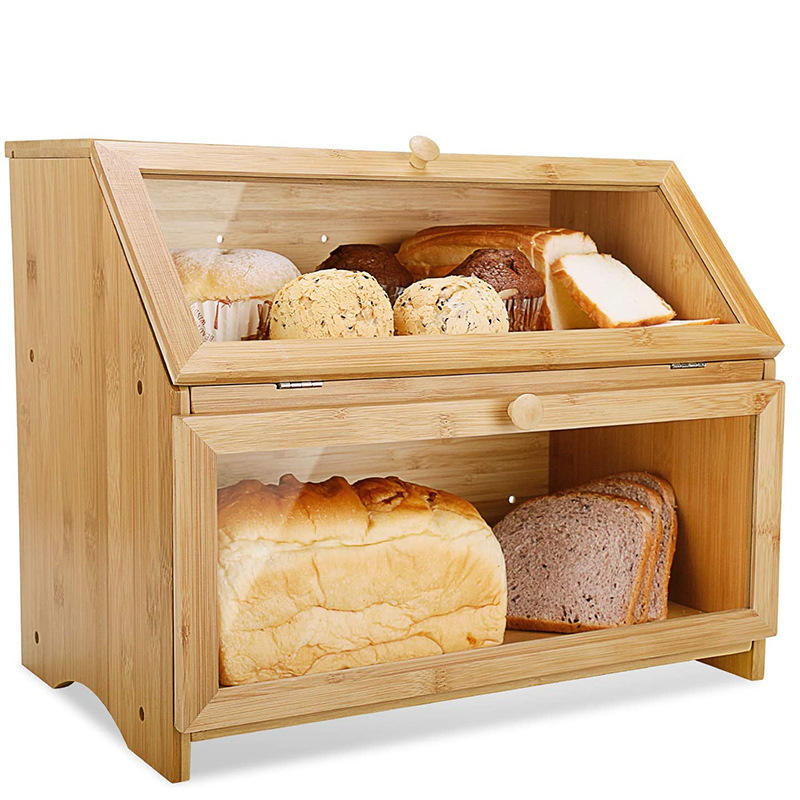 2 Tiers Kitchen Bamboo Bread Storage Box Set With Dividers Bamboo Lid Food Storage