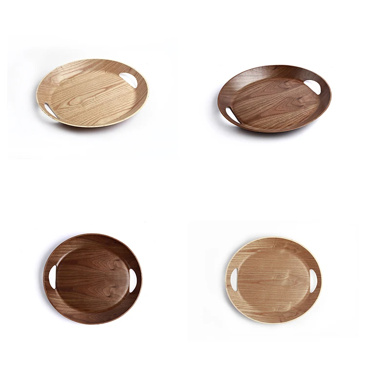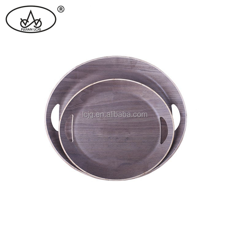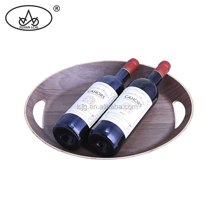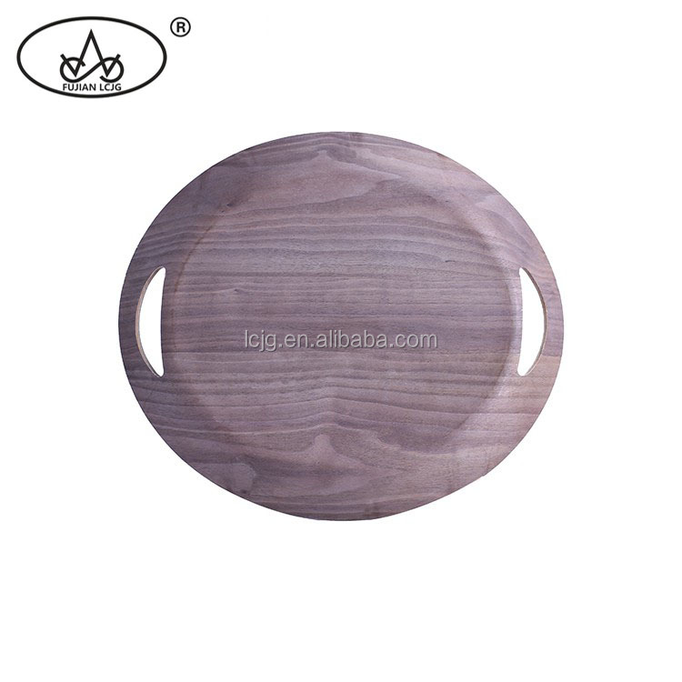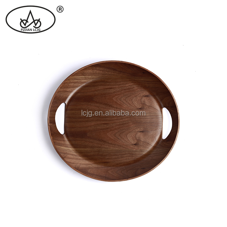 Alibaba supply cheap anti-slip oval walnut wooden cater plate serving tray with handle