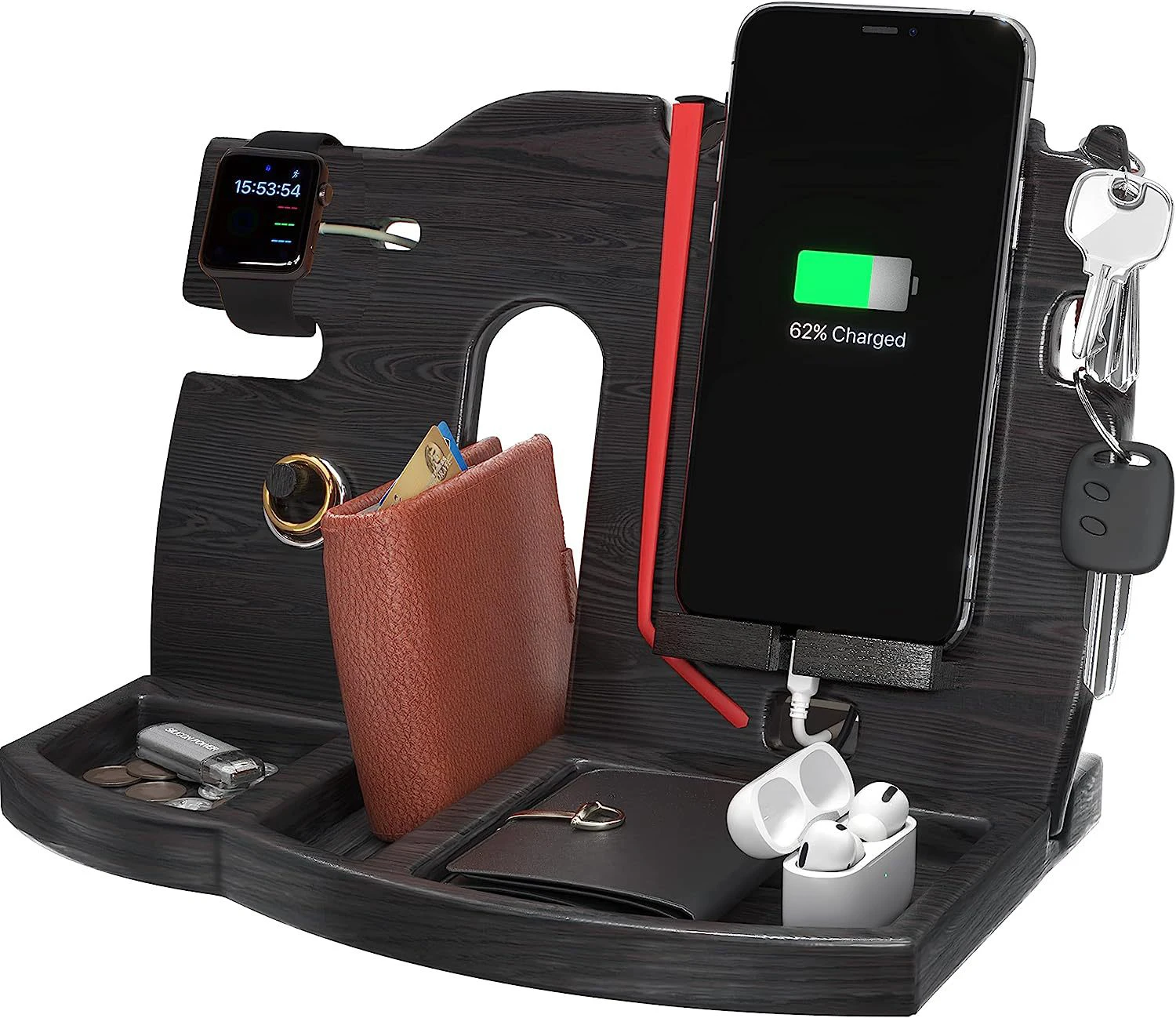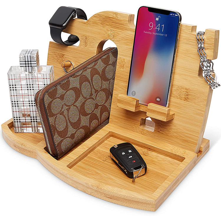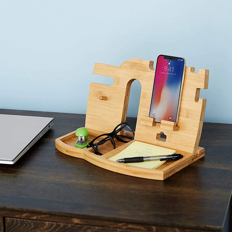 2024 Creative Multi-functional Customized New Style Wood Docking Station Nightstand Phone Organizer Holder for Desk Living Room
