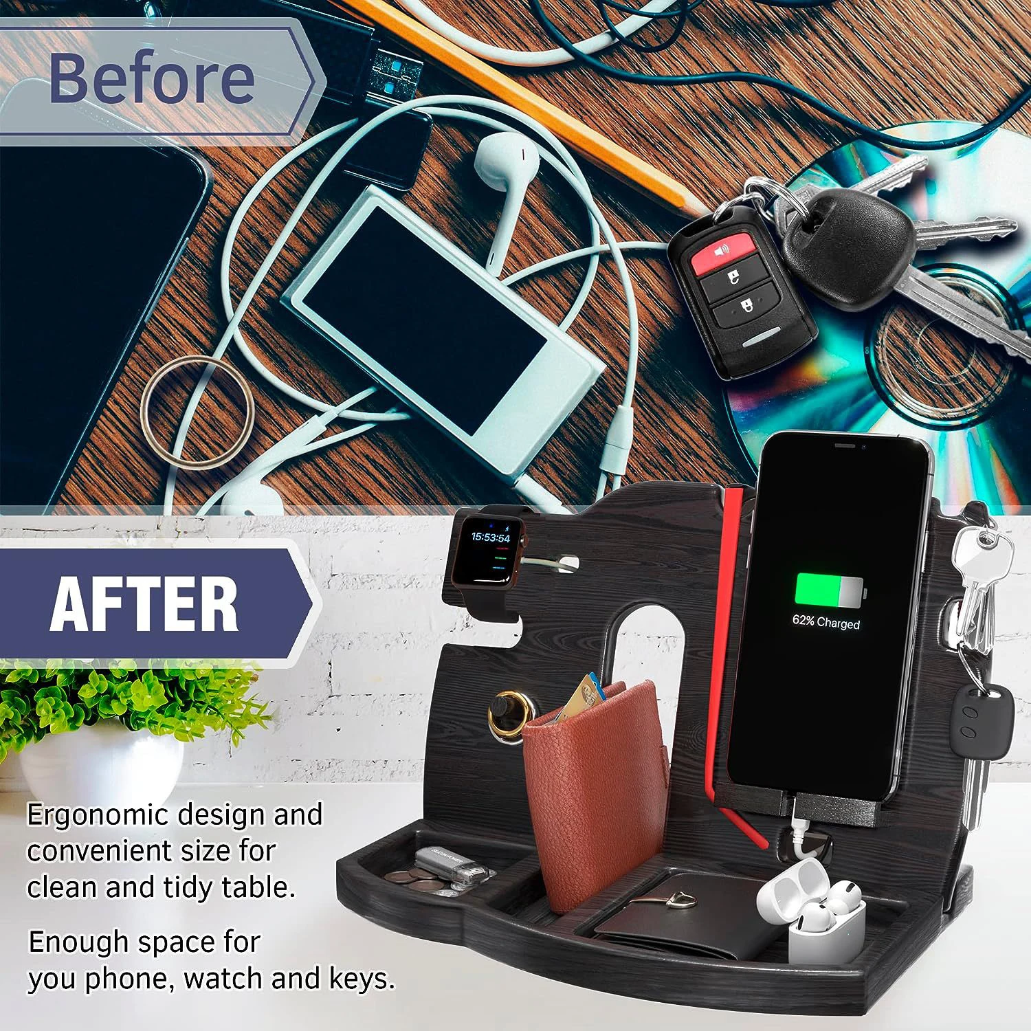 Product Name | High Capacity Drawer Desktop Nightstand Organizer Black Wood Bamboo Phone Docking Station | |||||