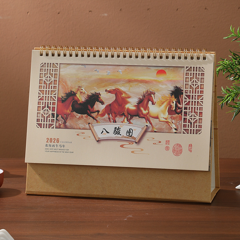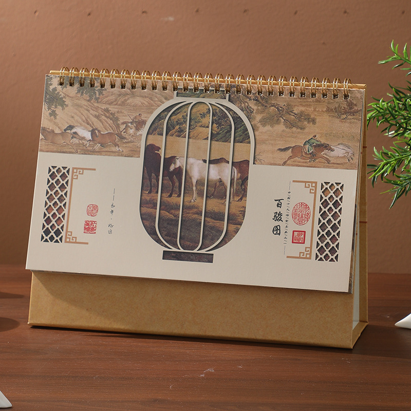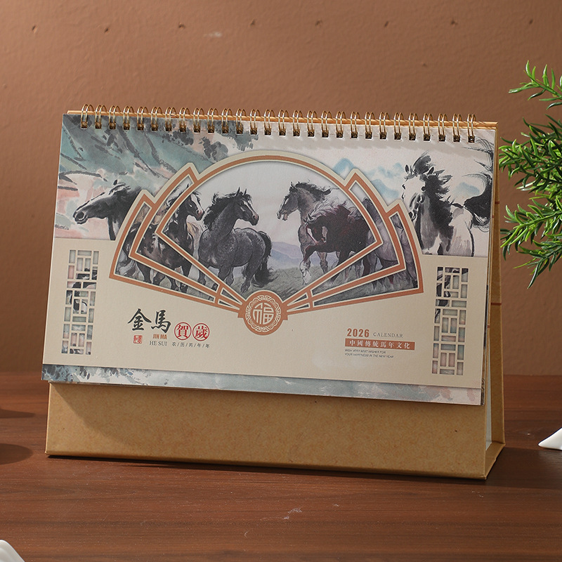 2026 National Style Retro Desk Calendar, Advertising Enterprise Special Edition, Monthly Calendar, Desk Self-discipline Punch-in, Ornament Calendar, Hot Stamping