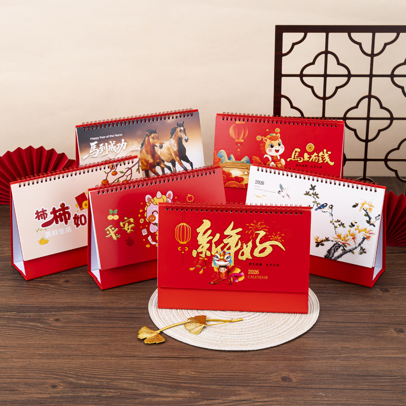 2026 Year of the Horse Chinese style thirteen boutique desk calendars, custom LOGO, creative simple desktop office ornaments, calendars