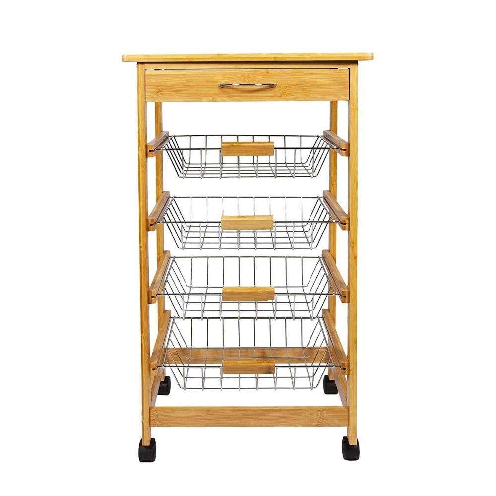 Product Name | 4-tier Multi-functional Wooden Kitchen Food Storage Shelf Dinner Serving Island Rolling Trolley Cart With Metal Basket | |||||