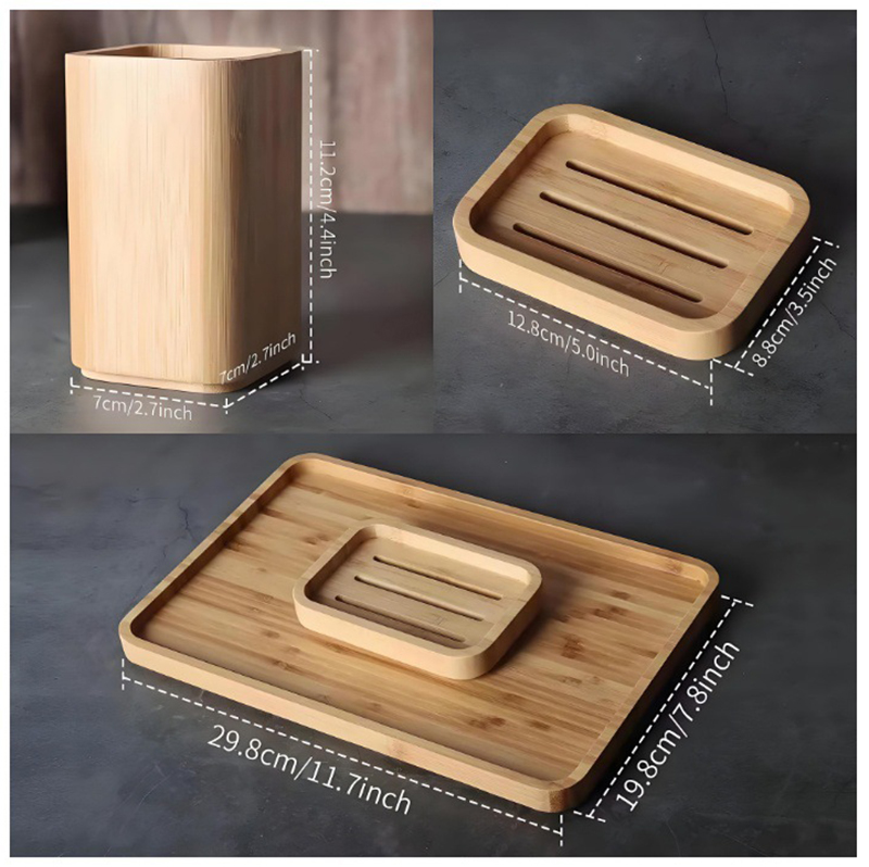 4Pcs Handmade Bamboo Sink & Bathroom Accessories Set Retro Set. Natural. Soap Dish Holder for Shower