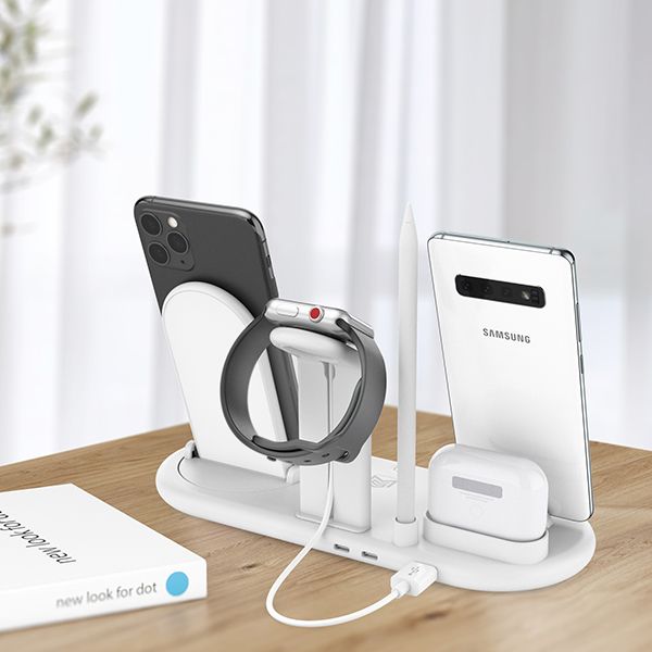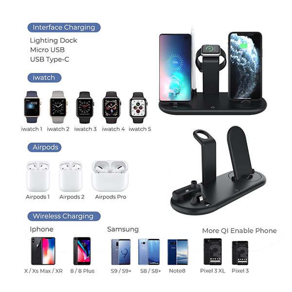 Input: Qc9V/2A, PD14 .5V/2AOutputforcellphone:5W-7.5W-10WOutputforsmartpencil:2w2in1Dockchargeroutput:5V/1AUsboutputforwatchcharger:5v/1A