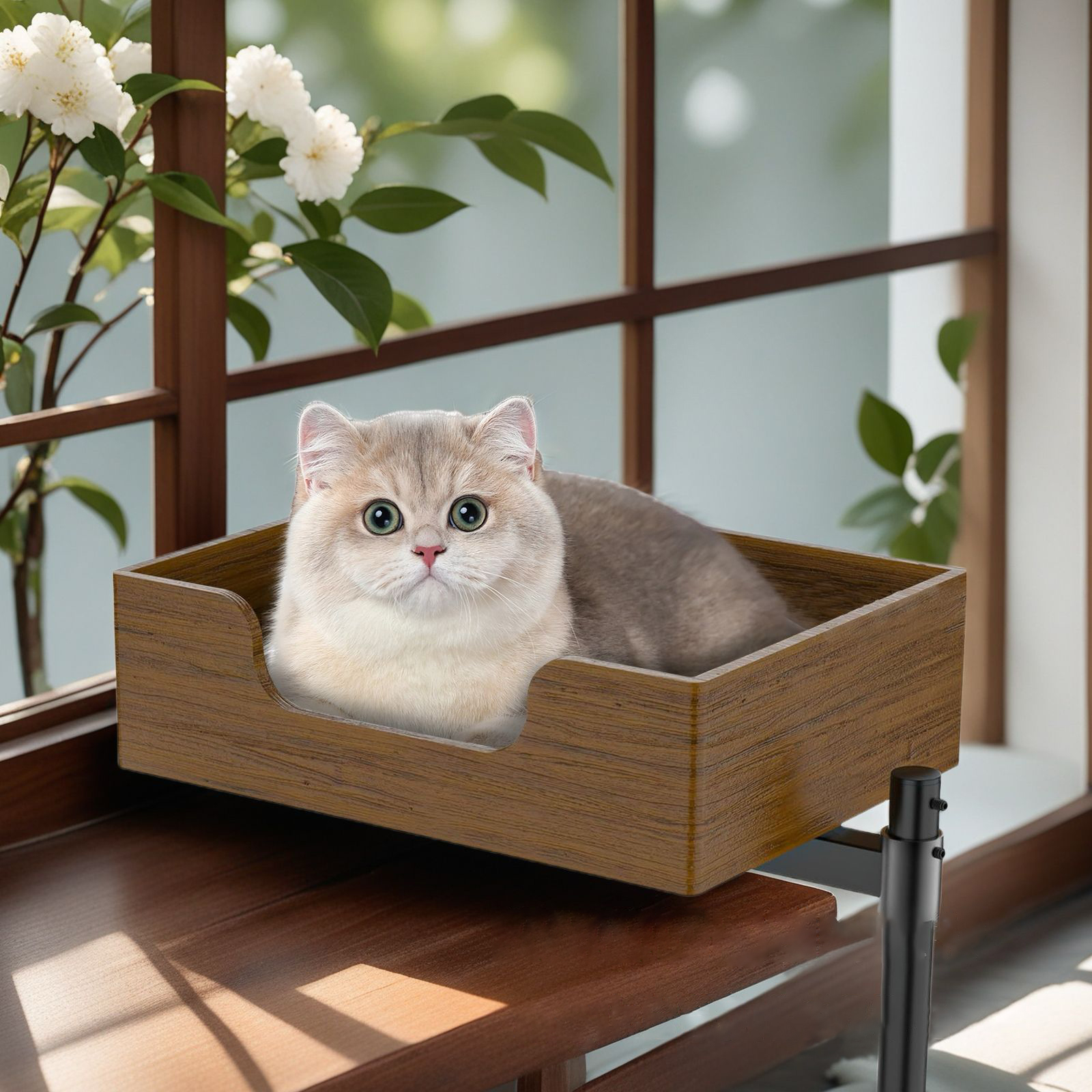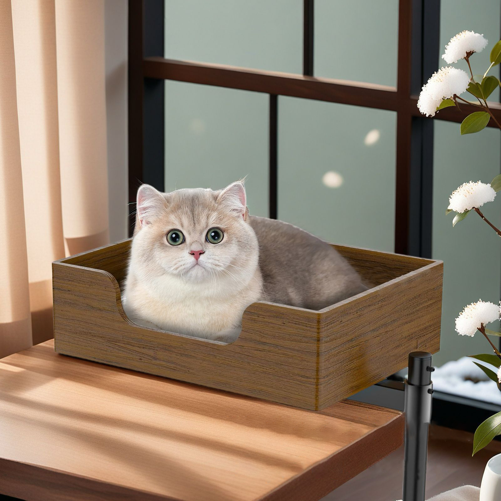 Adjustable Wooden Cat Bed Desk Metal Frame Classic Cat Cave Pet Cage Height-Adjustable Safety-First Features for Cat Lovers
