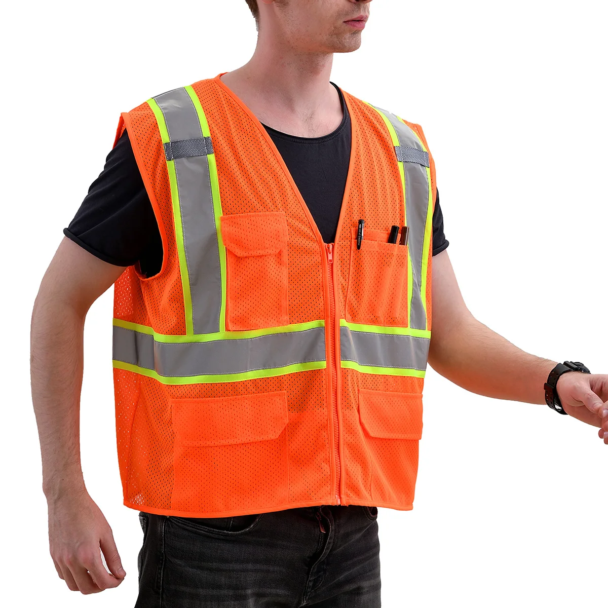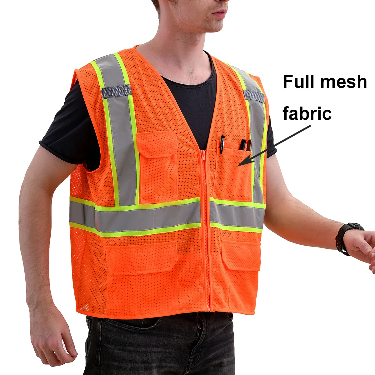 ANSI Hi Vis Safety Vest with 10 Pockets Multi-Color Customizable Reflective Work Vest for Construction