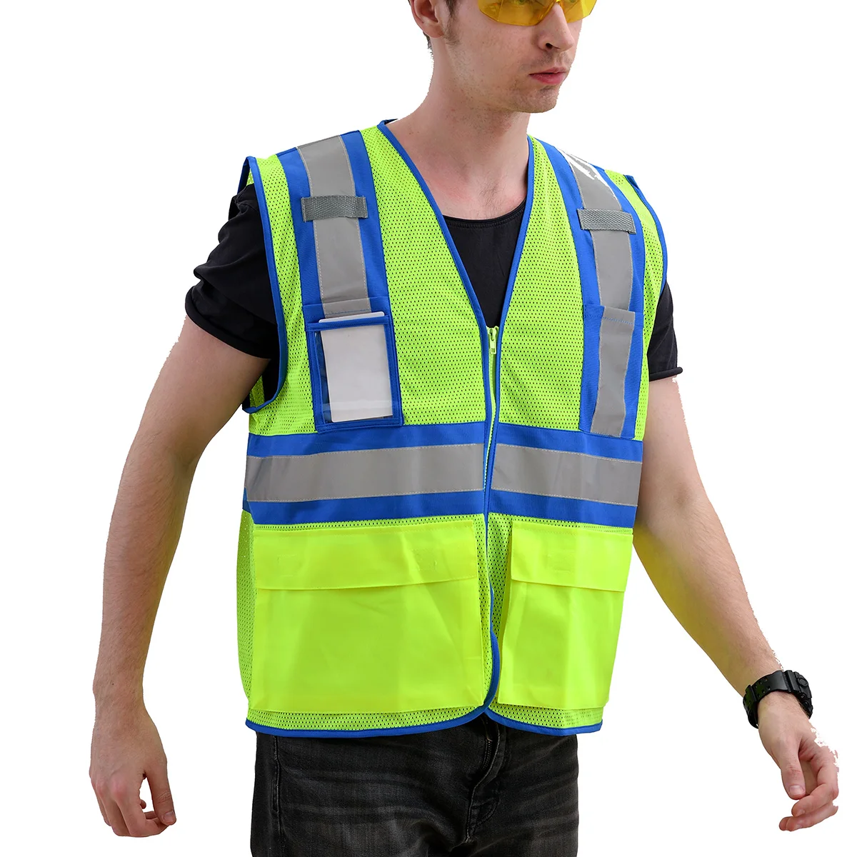 ANSI Hi Vis Safety Vest with 10 Pockets Multi-Color Customizable Reflective Work Vest for Construction