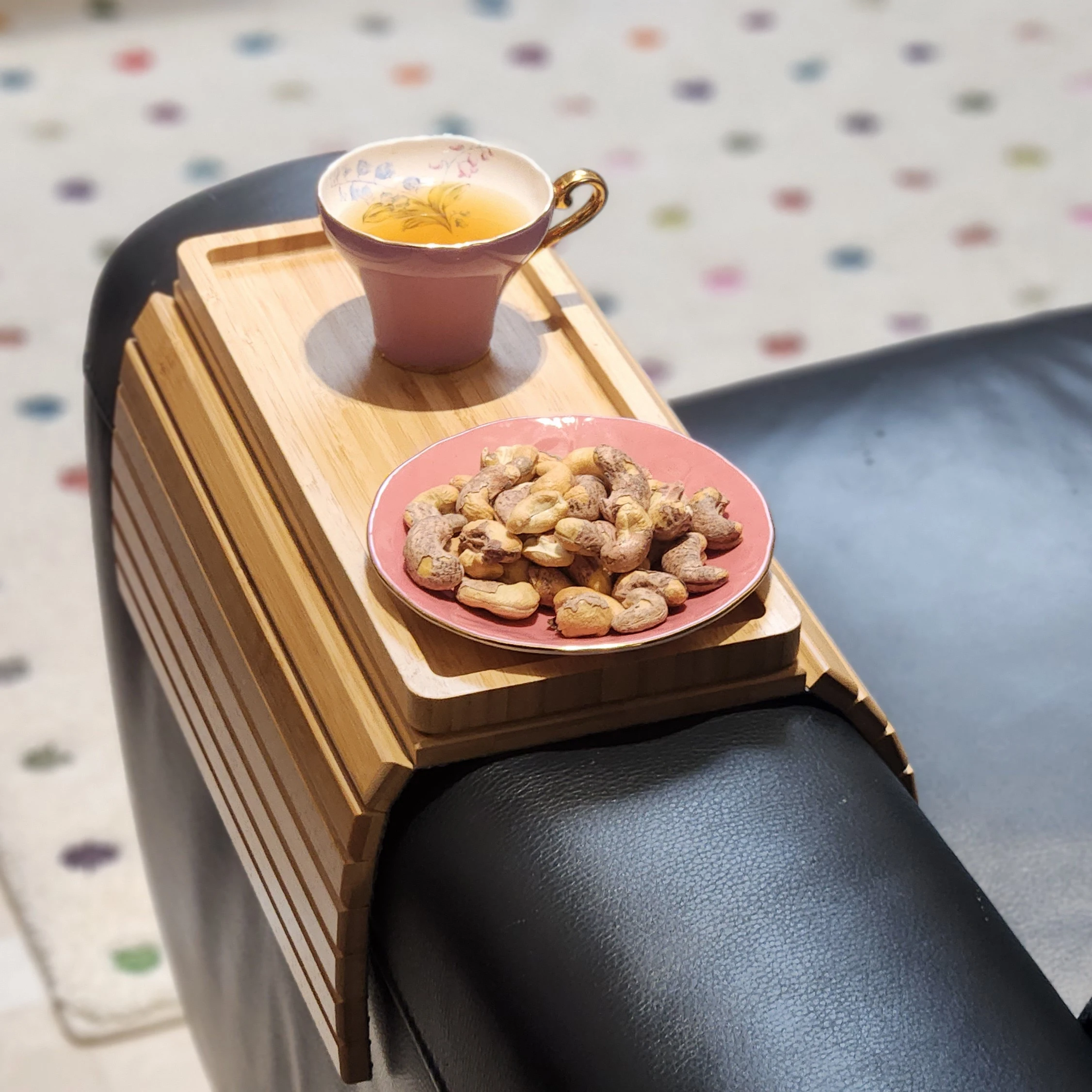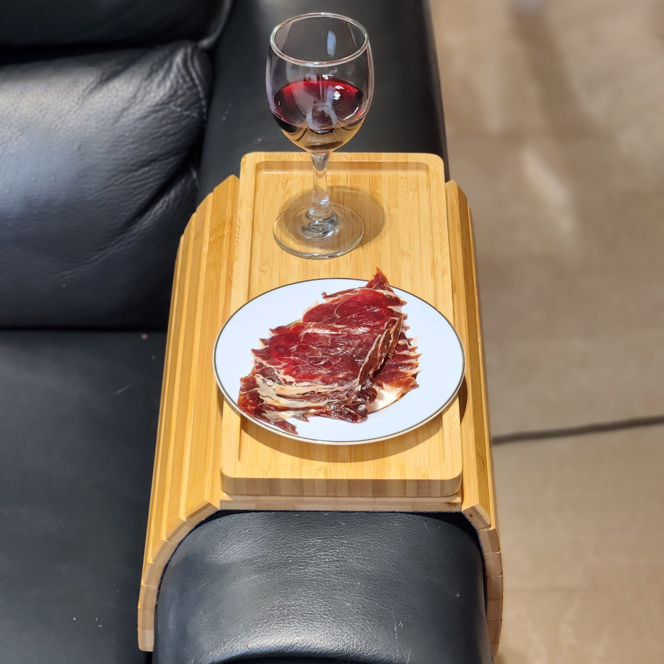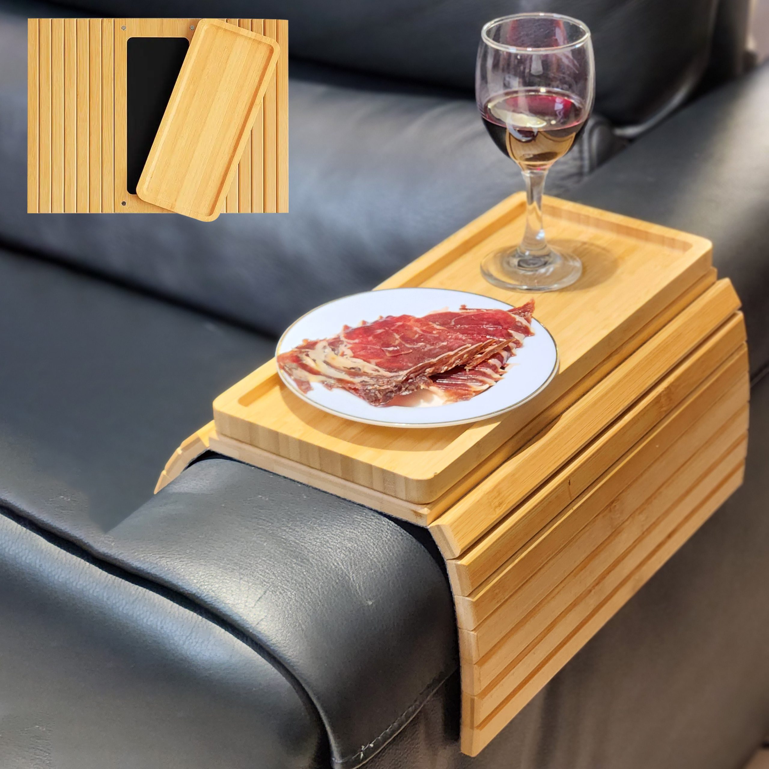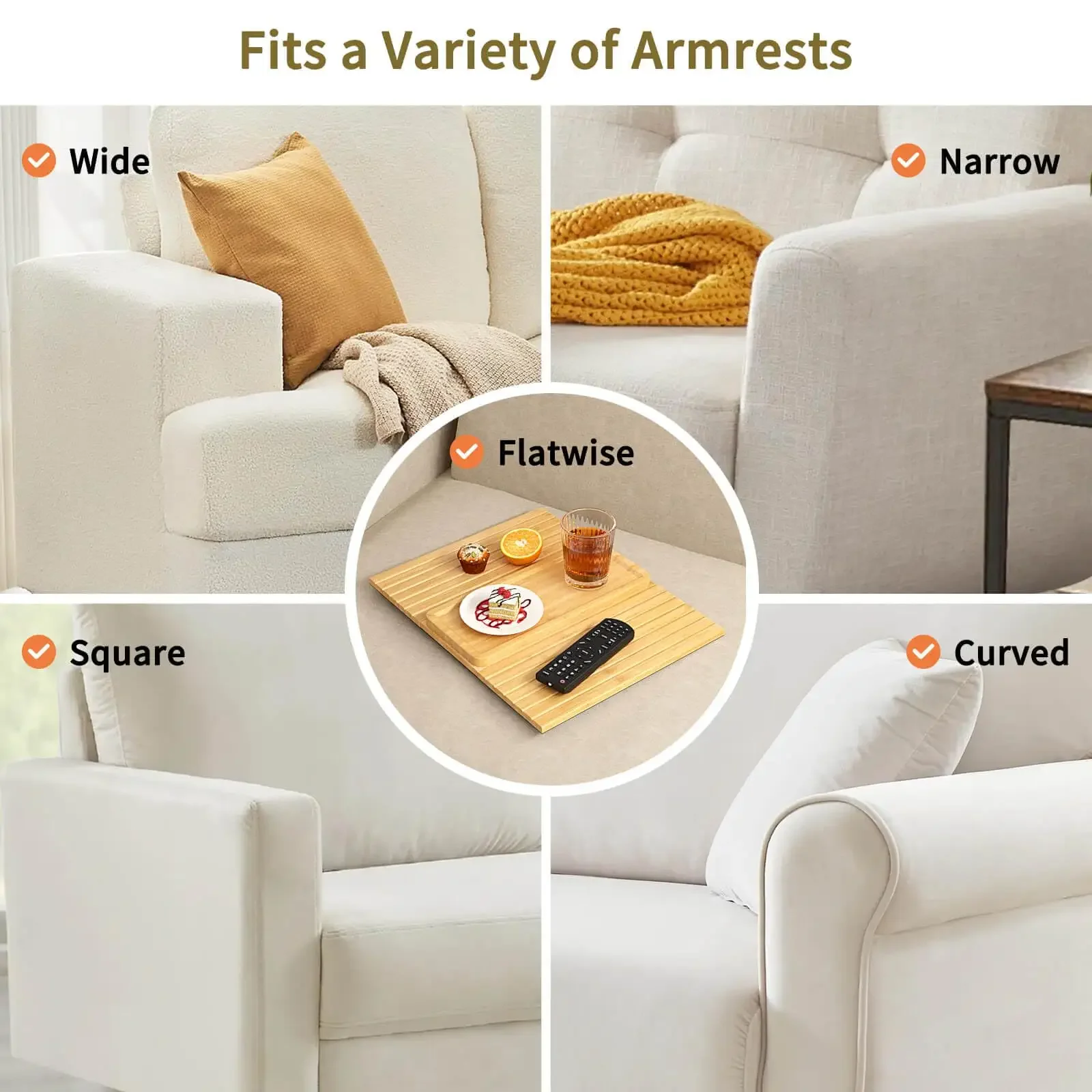 No need to worry about spilling your drinks on your loveseats. recliners. and couches with the Sofa Arm Table Tray Natural Bamboo; Couch tray will protect your sofa and provide an easy-to-reach holder for your drinks