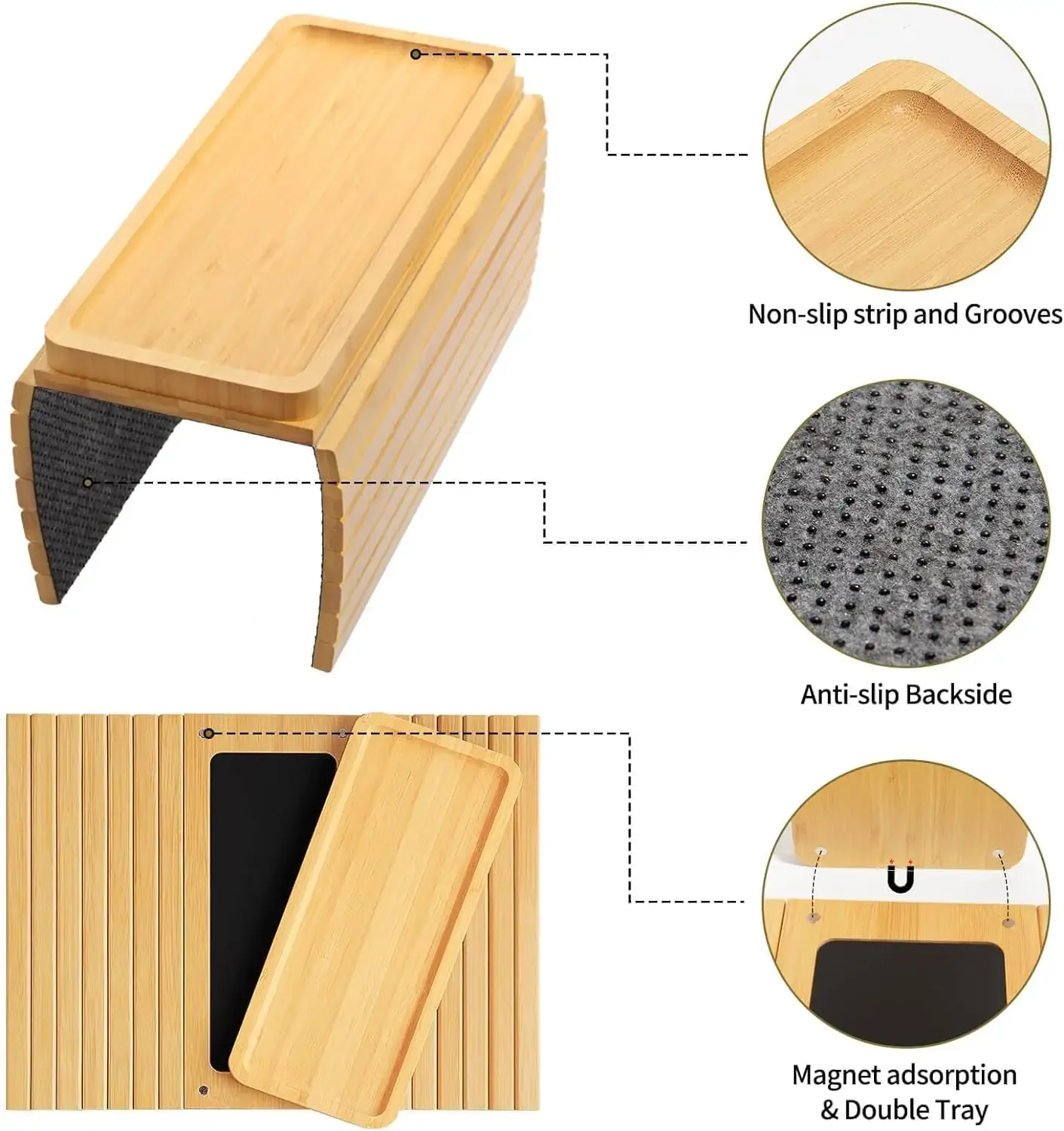 Anti-Slip Clip Bamboo Sofa Armrest Tray Table Wooden Wide Sofa Shelf for Home Accessories Living Room Accessory