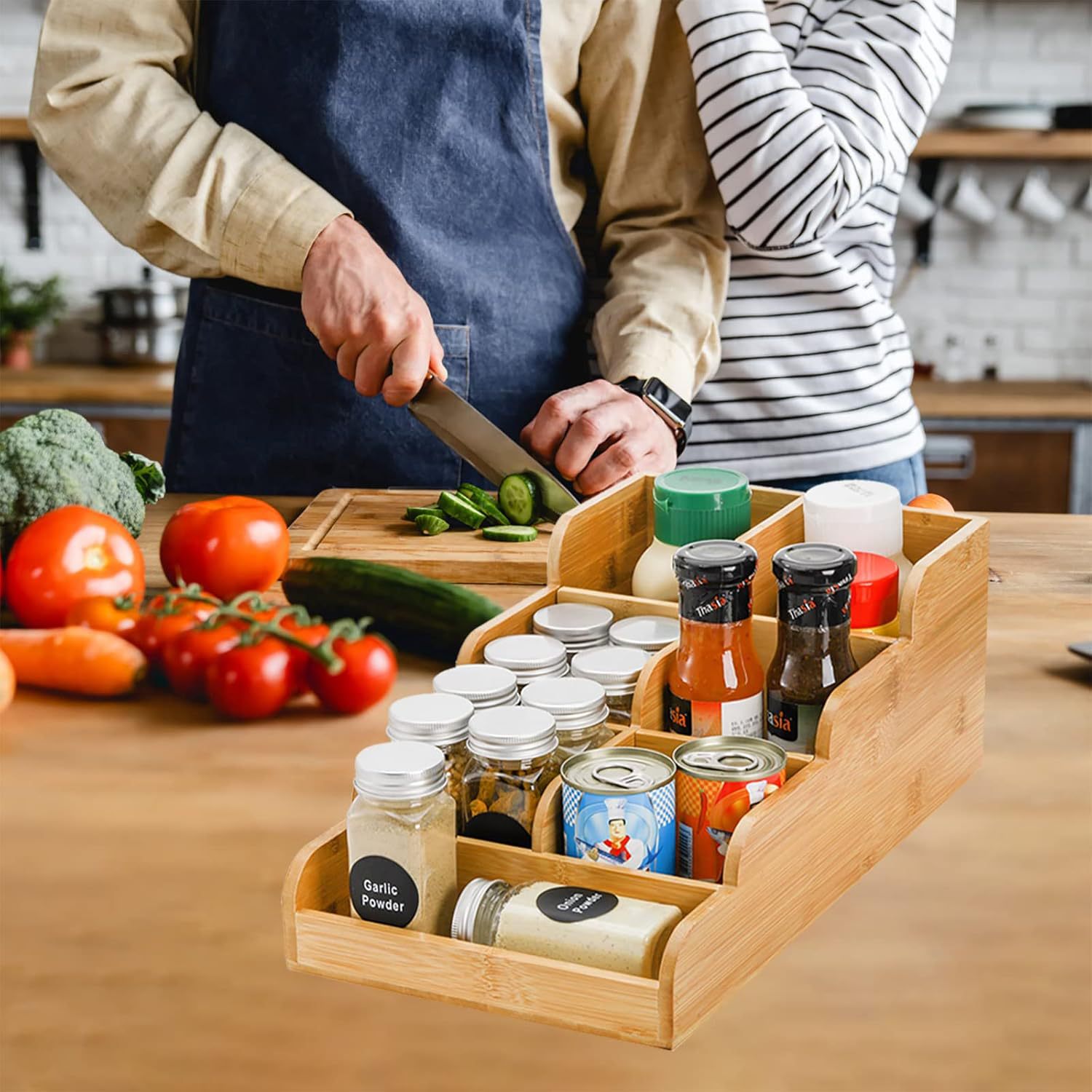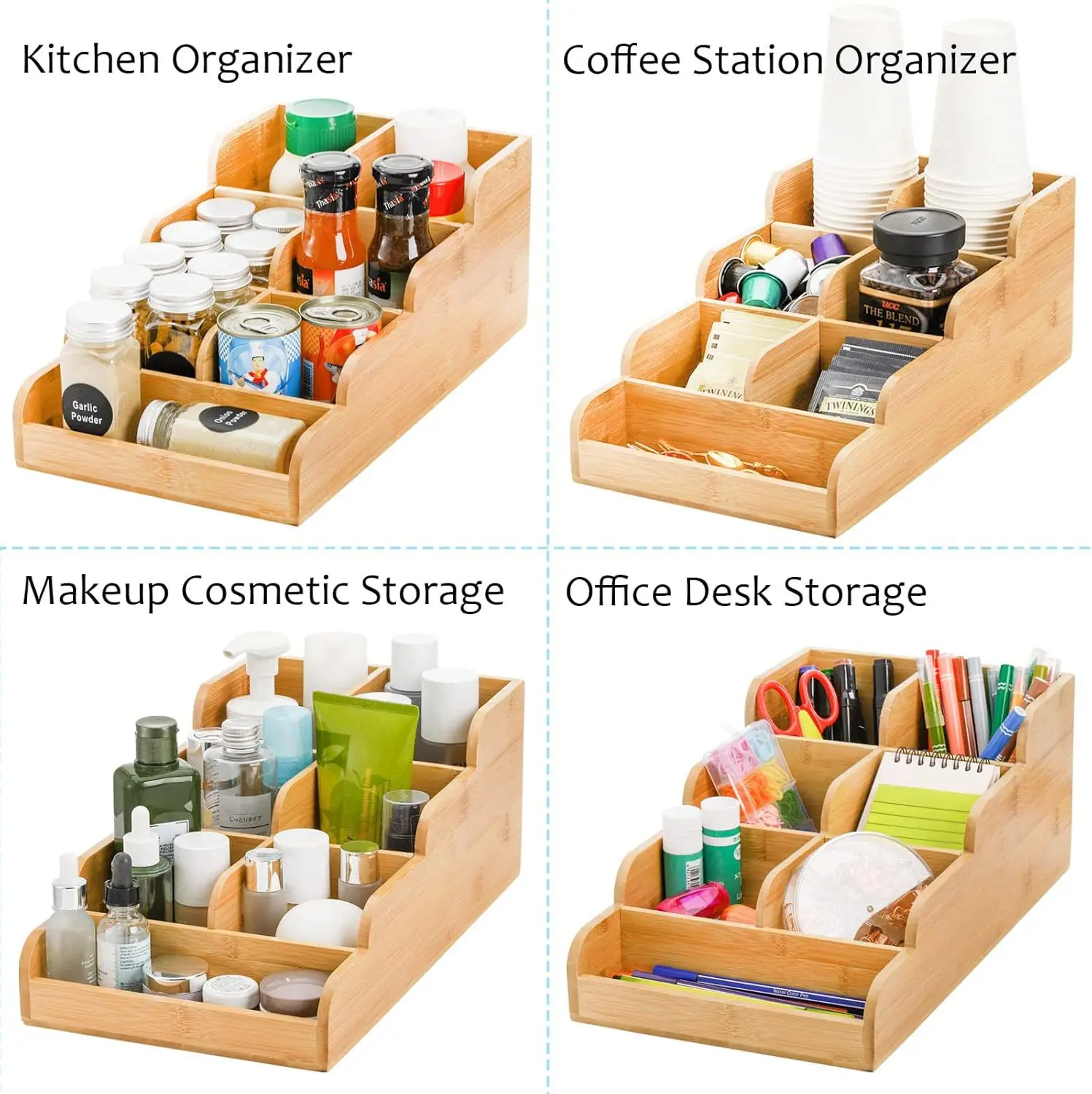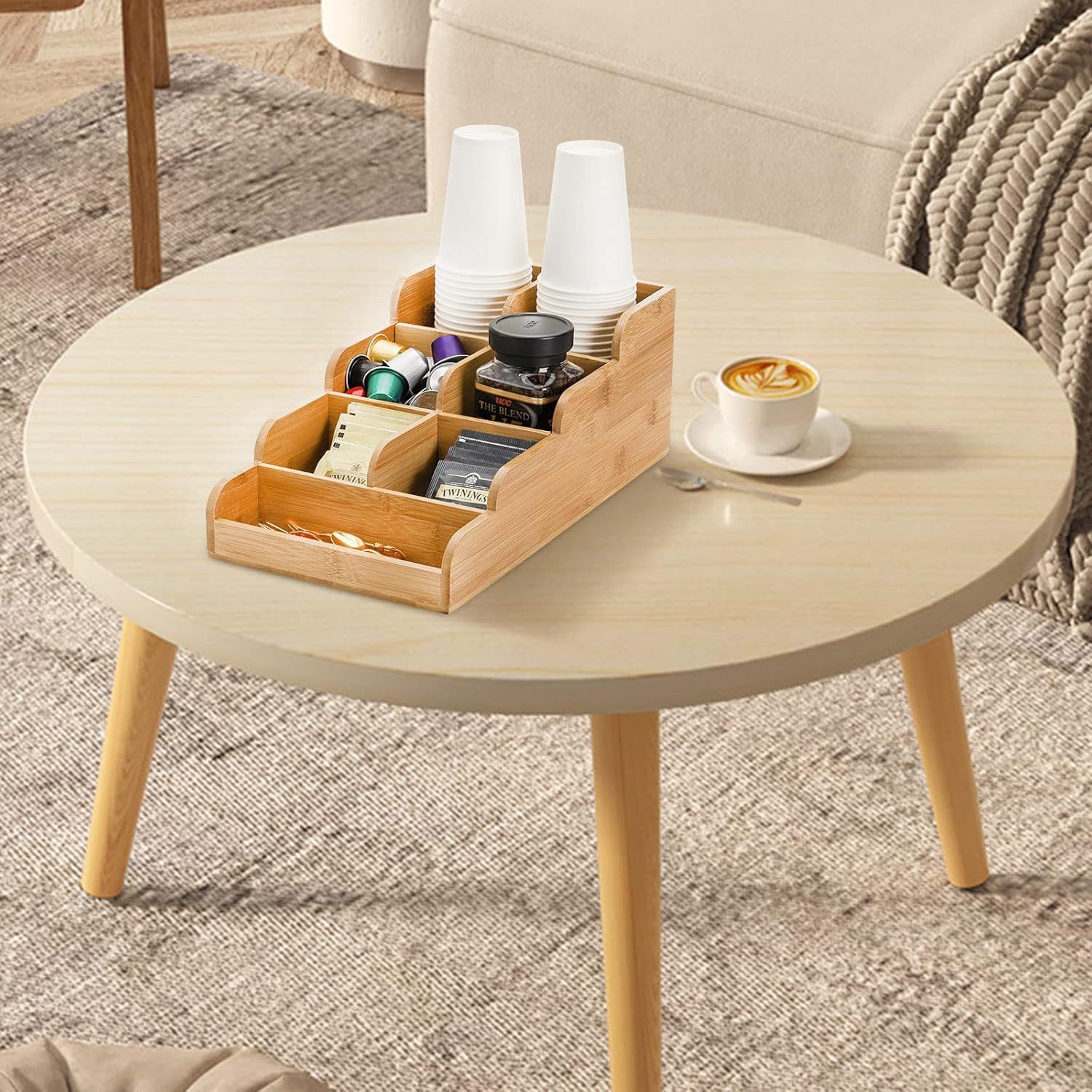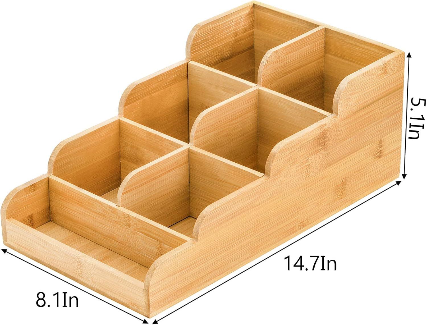 Bamboo 7-Compartment Coffee Station Organizer for Coffee Tea Jewelry Bag Storage