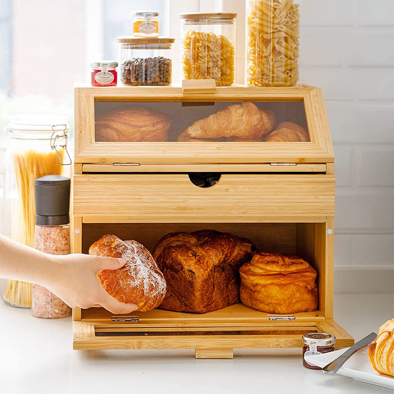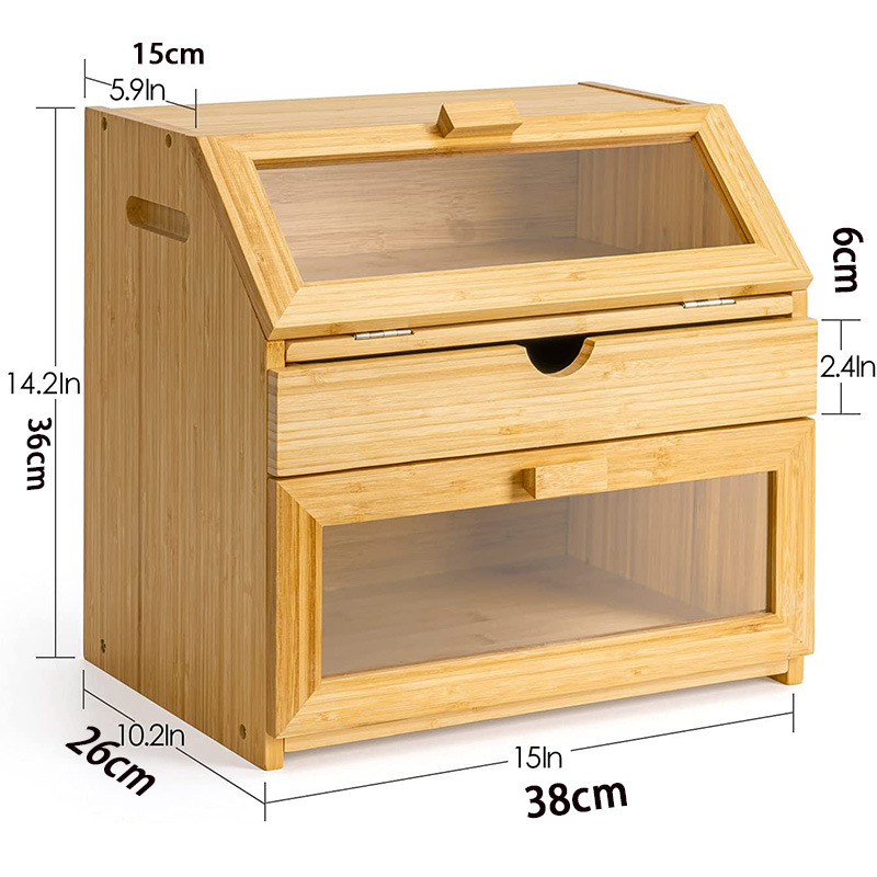 Product Name | Bamboo Bread Box For Kitchen Counter-Large Capacity Wooden Bread Storage Container Farmhouse Bread holder Box with Window | |||||