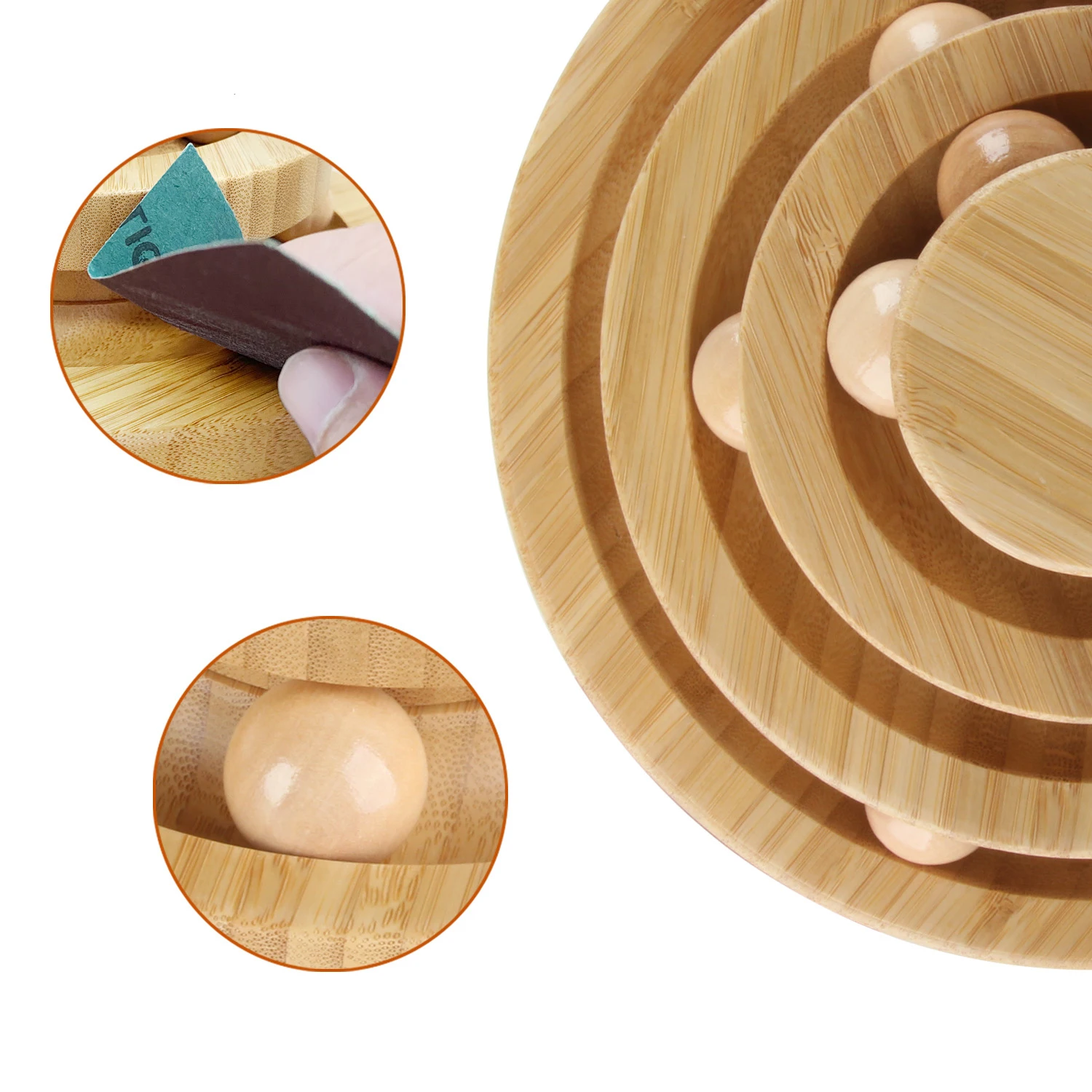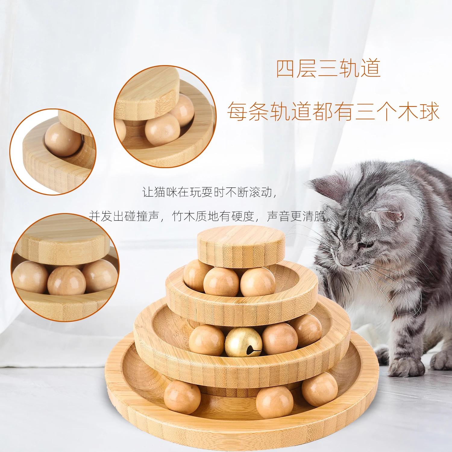 Bamboo Cat Toy with Rolling Ball Funny 3-Level Tracks Teaser and Smart Rotatable Plaything Lovely Simple Style Pet Tower