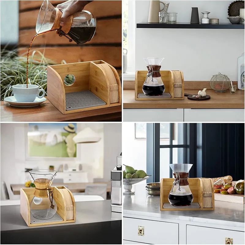 Bamboo Coffee Filter Holder Coffee Paper Storage Rack Coffee Filter Paper Container Stand Kitchen Accessories
