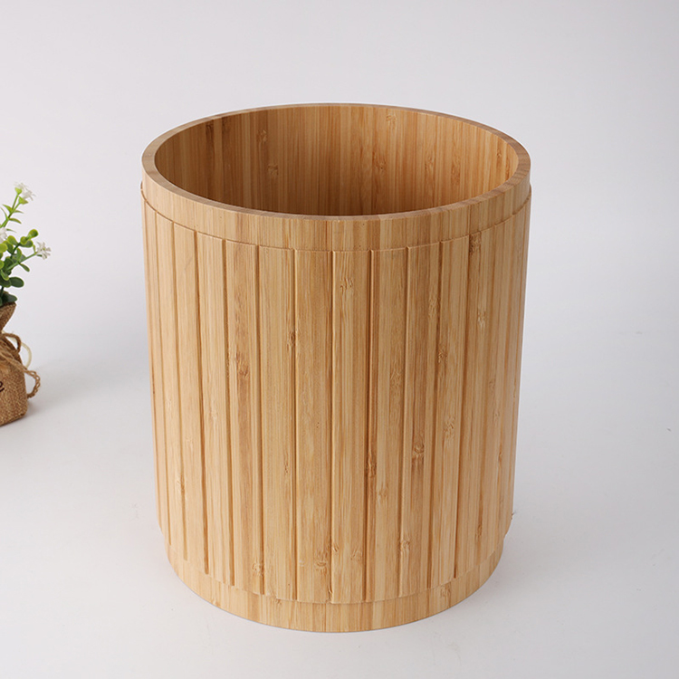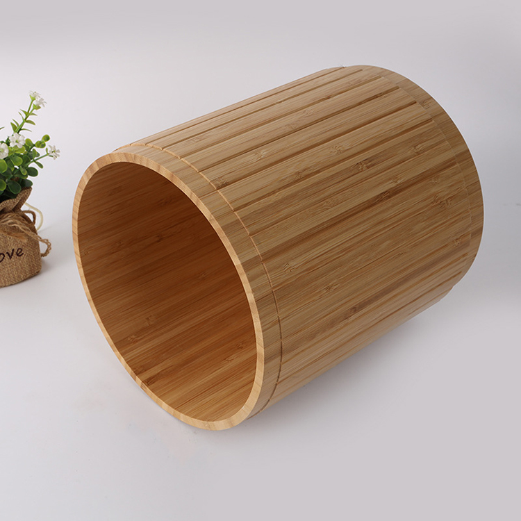 Bamboo Desktop Kitchen Office Small Wastebasket Round Bamboo Trash Can