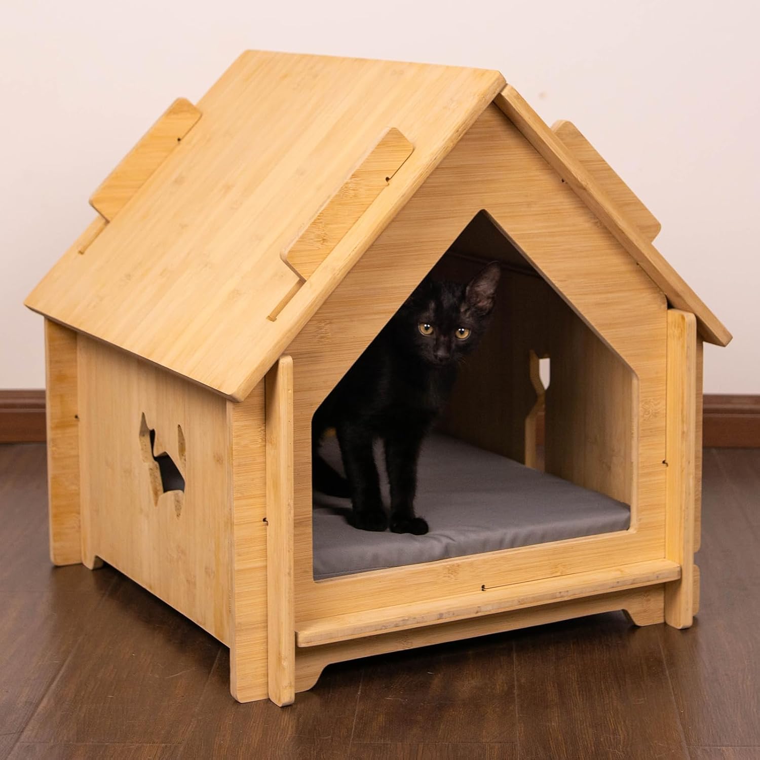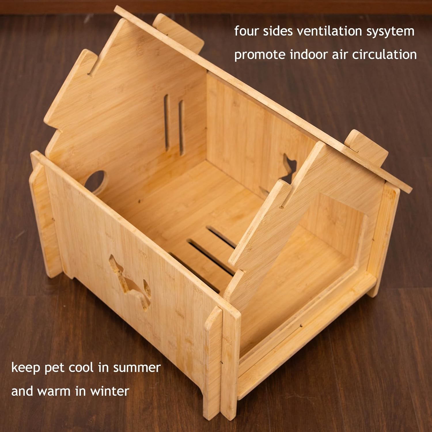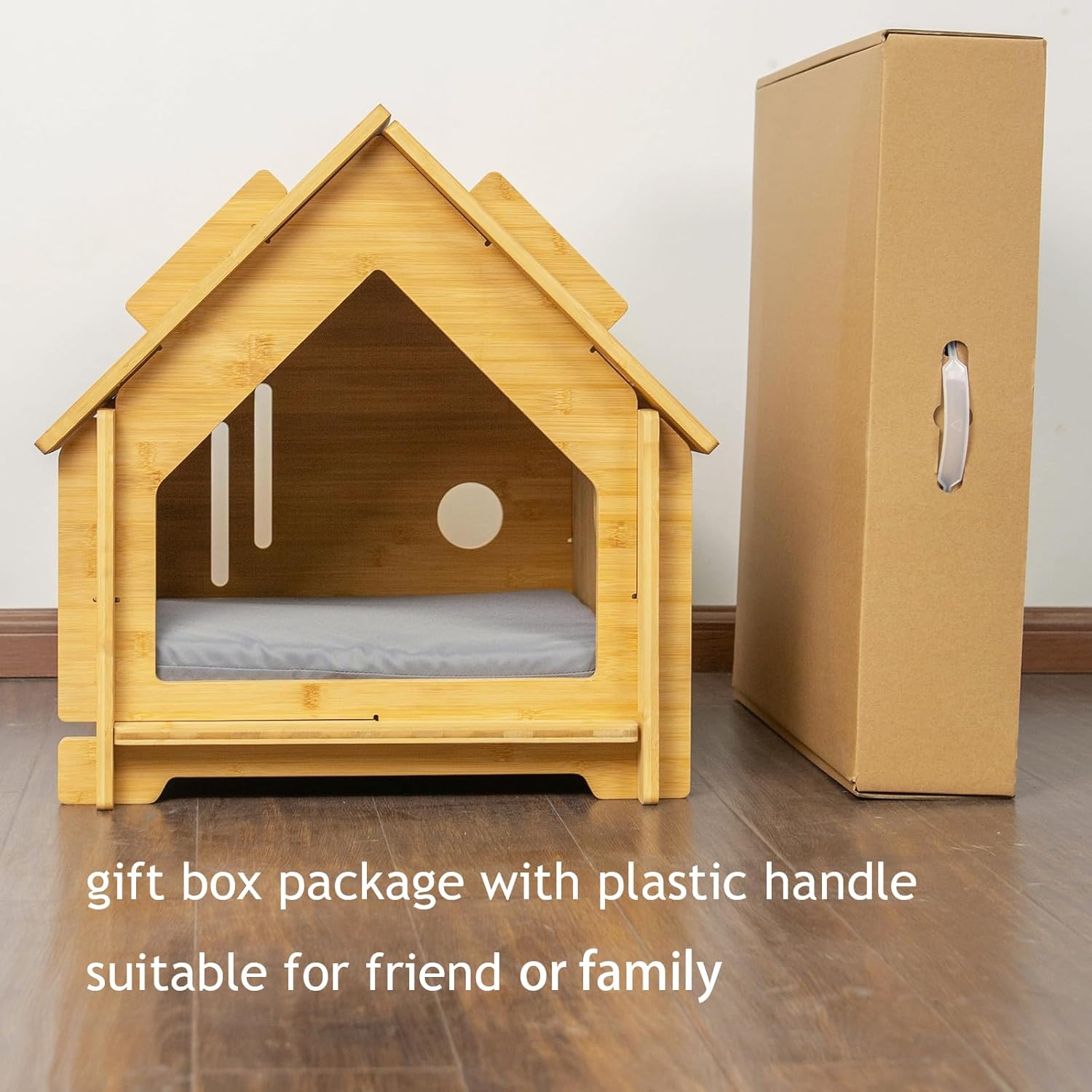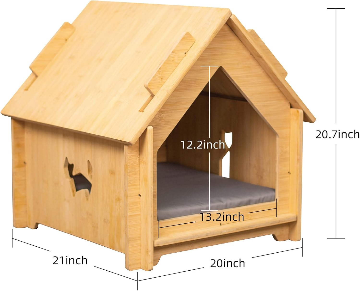Bamboo Dog House Indoor for Small Dog. Sturdy Cat Bed House Indoor with Air Vents for Small to Large Sized Cats