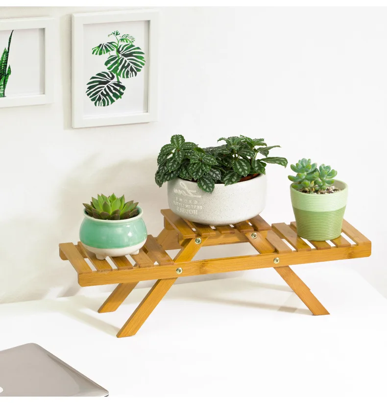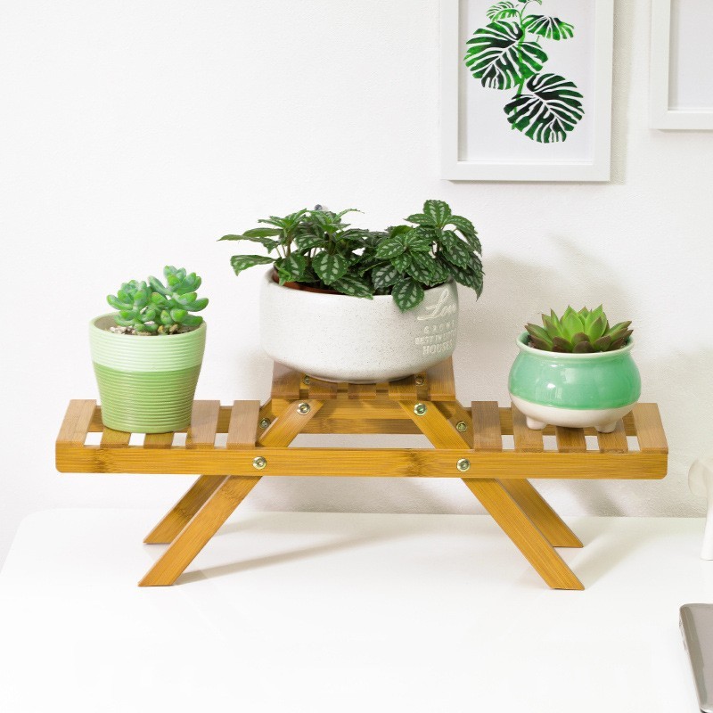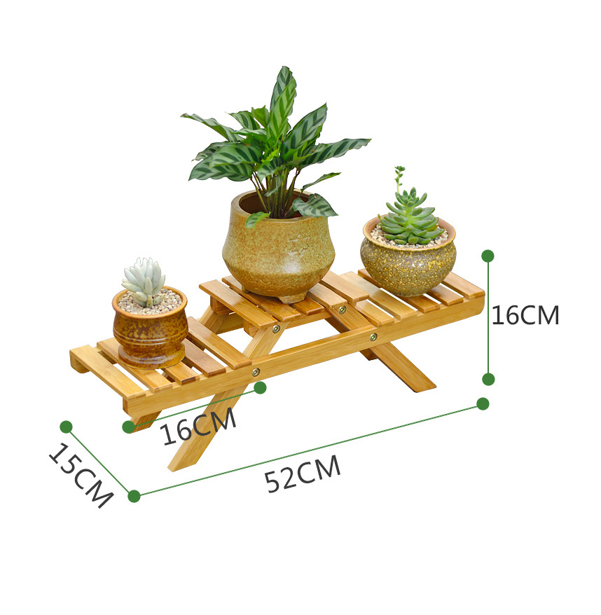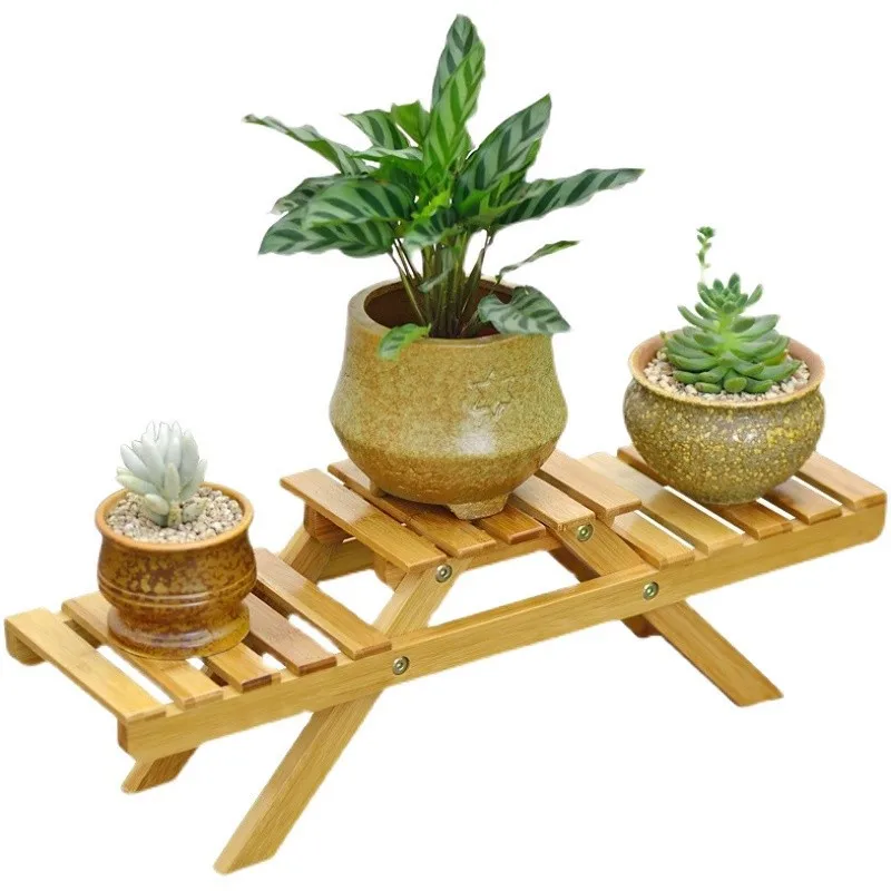 Bamboo Double-Tier Triangular Plant Rack Indoor and Outdoor Balcony Flower Display Storage Rack