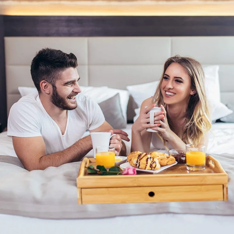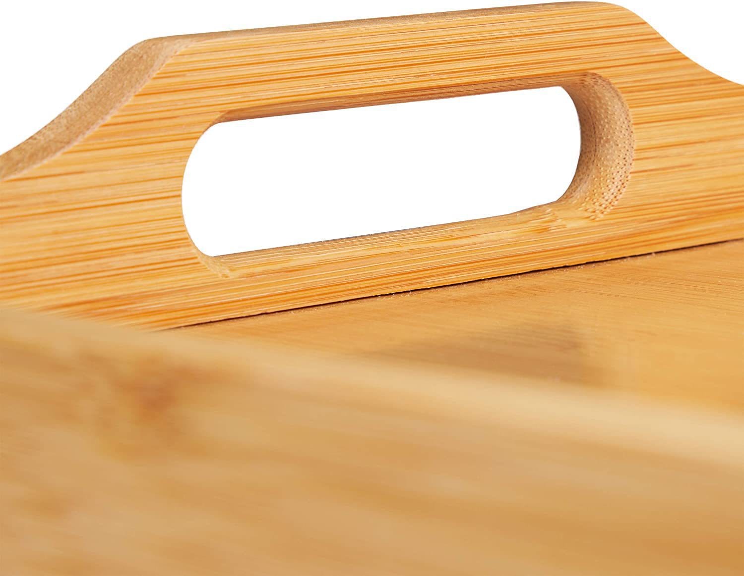Bamboo Eco-friendly High-grade Rectangle Food Serving Tray with Slide-out Drawer Kitchen Decor Accessories for Coffee Table