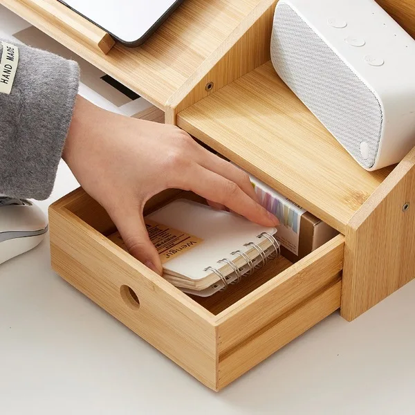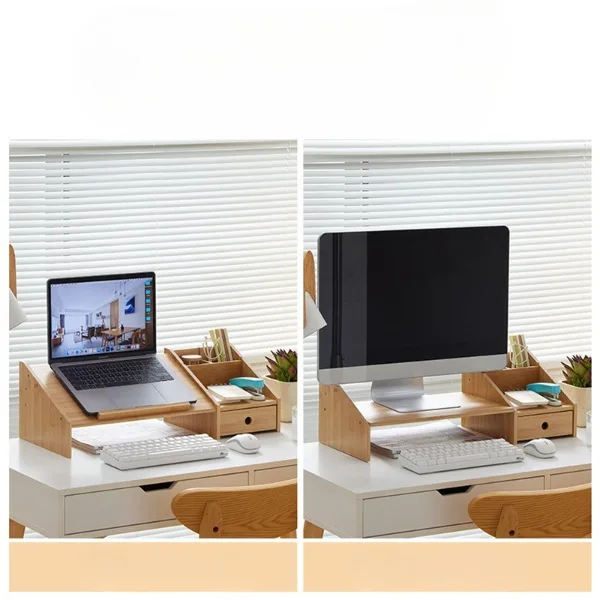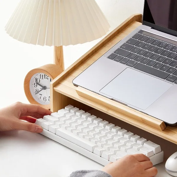 Bamboo Wooden Storage Organizer Office Computer Desk Laptop Cellphone Holder Printer Stand Desktop Rack Monitor Stand Riser