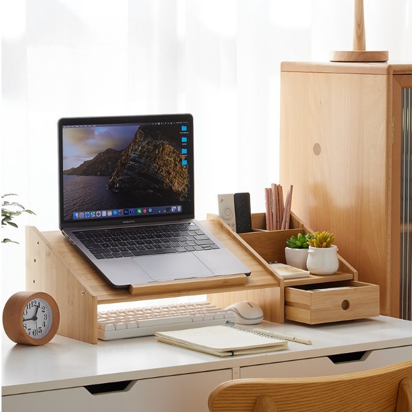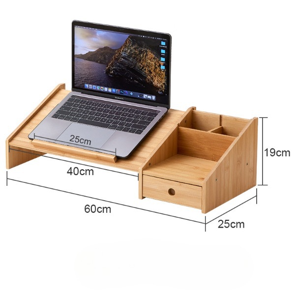 Bamboo Wooden Storage Organizer Office Computer Desk Laptop Cellphone Holder Printer Stand Desktop Rack Monitor Stand Riser