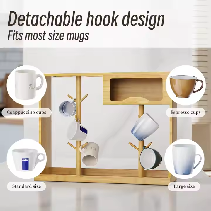 Product Name | Bamboo Mug Holder. Coffee Cup Holder with 8 Hooks and Trash Bag Container.Coffee Mug Cup Hanger Stand for Counter | |||||