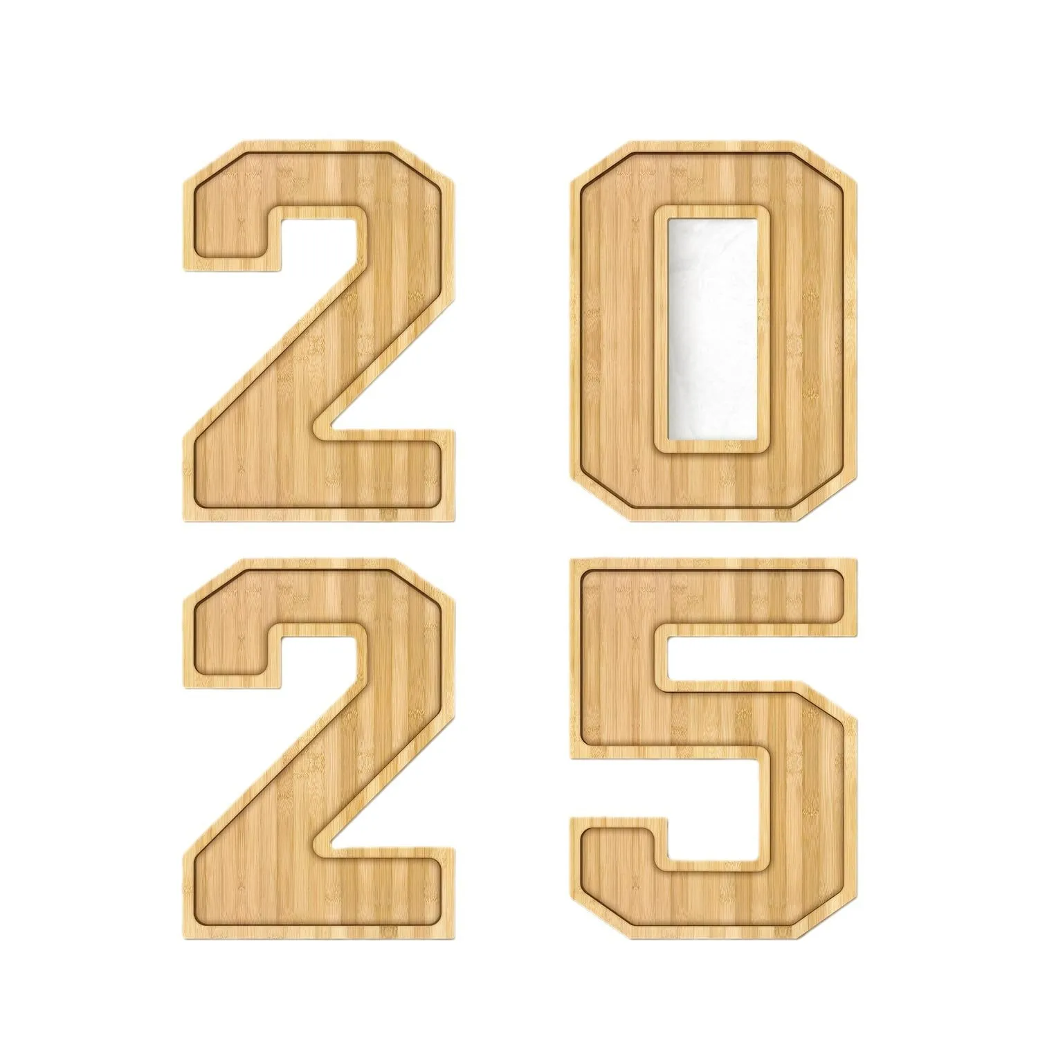 Bamboo Wood 2025 Charcuterie Number Boards Bamboo Food Serving Trays Versatile Bamboo Digit Cheese Board for Snack