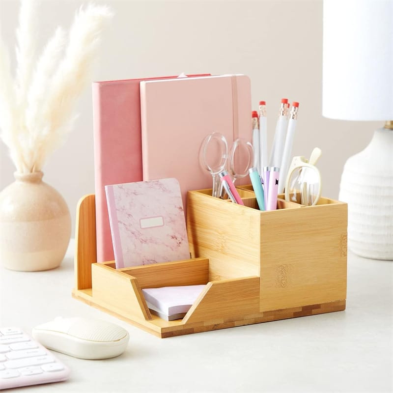 Bamboo Wood Desk Organizer with File Organizer Office Supplies Storage and Decor Combo Desk Organization for Tool Organization