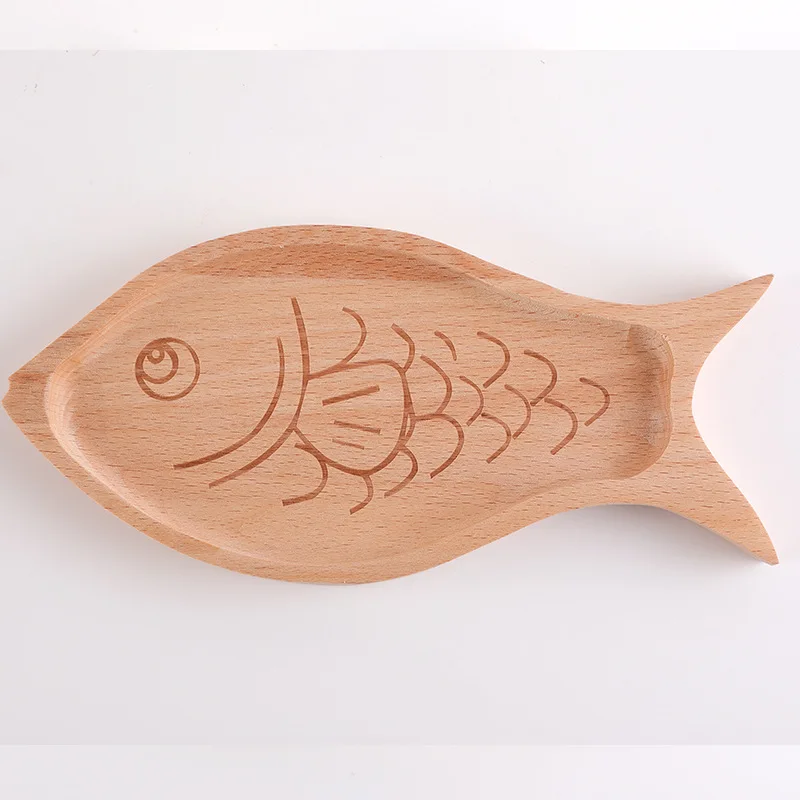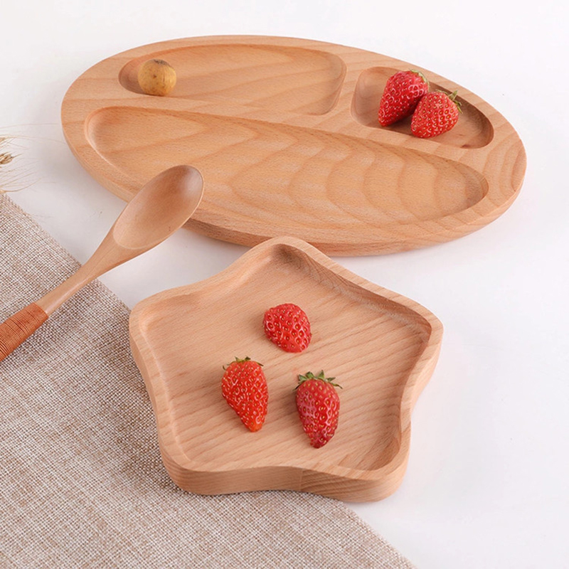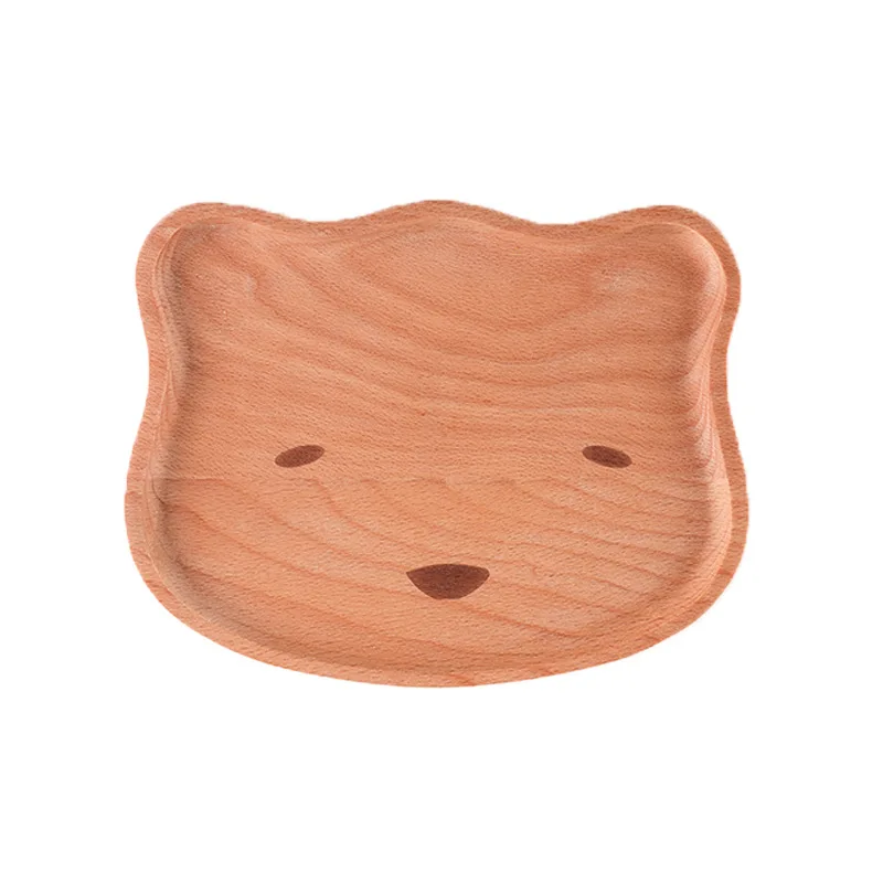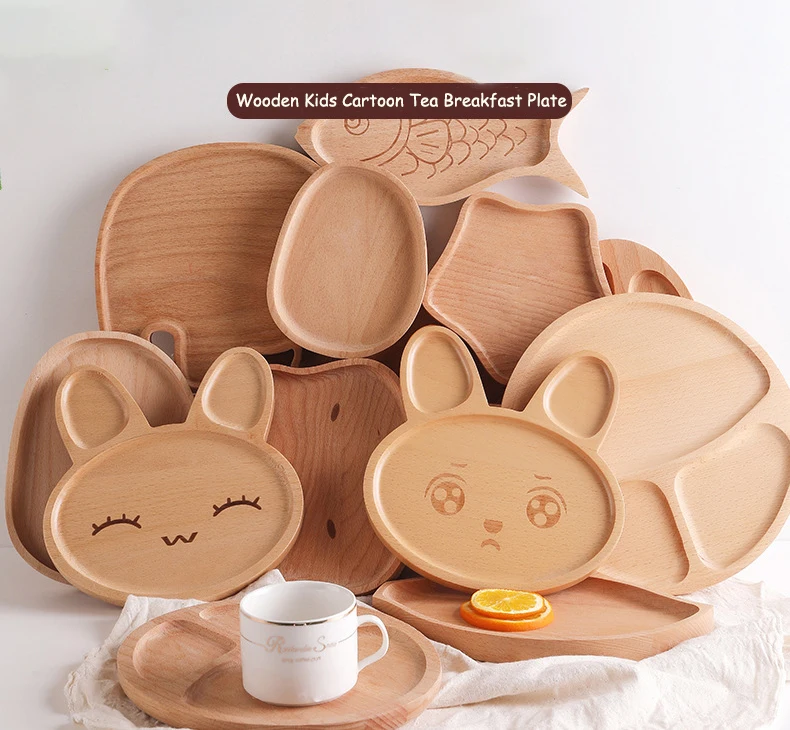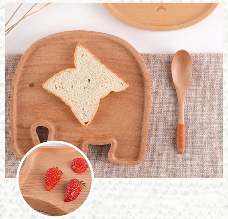 Beech Wood Baby Kids Boy Girl Children Wooden Kids Cartoon Tea Breakfast Plate Household Cute Solid Wood Tray