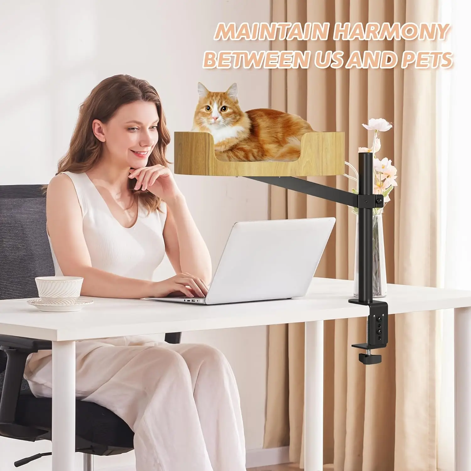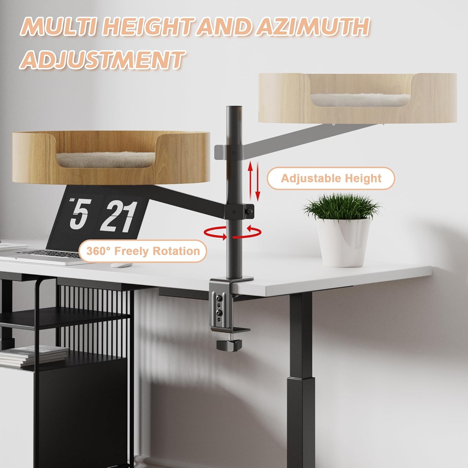 Cat Bed for Indoor Cats with Adjustable Height&360° Rotation. Elevated Desk Nest Cat Bed for Table.