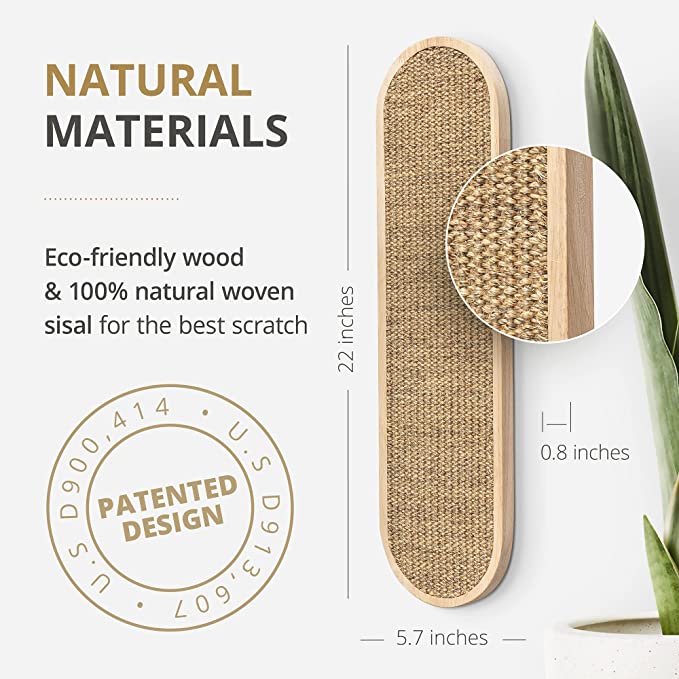Cat Scratching Post – Wall Mount Wooden Sisal Cat Scratcher – Vertical scratch Pad for Indoor – Cute Cat Wall furniture