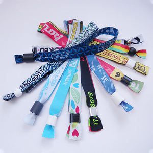 Cheap Eco Friendly Branded Adjustable Party Festival Events Sublimation Printable Cloth Woven Fabric Custom Wristbands