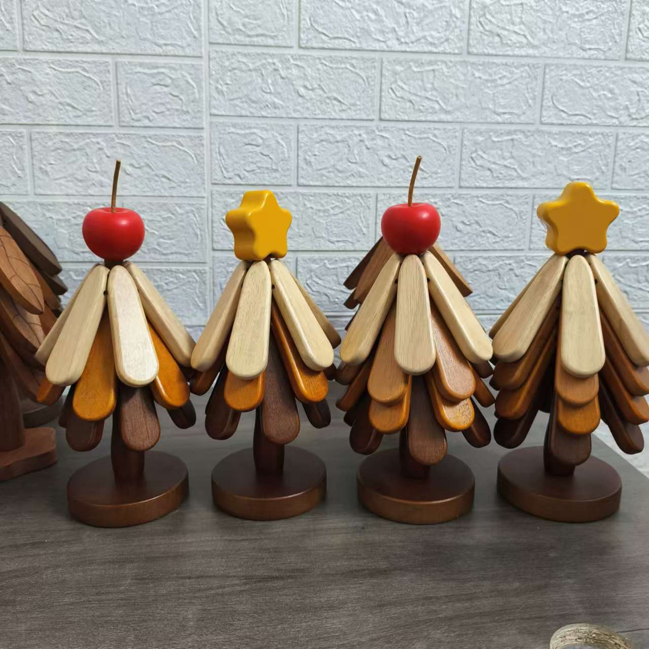 Classic Style Heat-Resistant Wooden Christmas Tree Coasters Set Wood Trivets Dining Table Mat Potholders for Hot Dishes Teacups