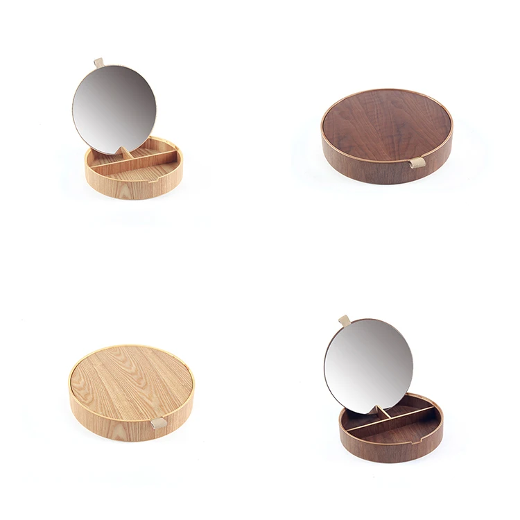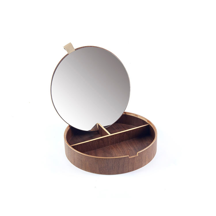 Classical Round Black Walnut Wood Jewelry Organizer Box Jewelry Storage Box Case With Mirror