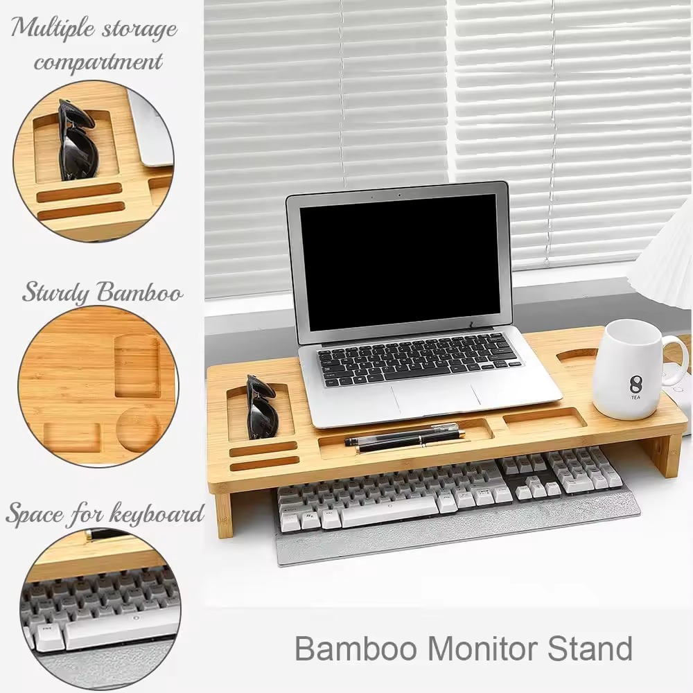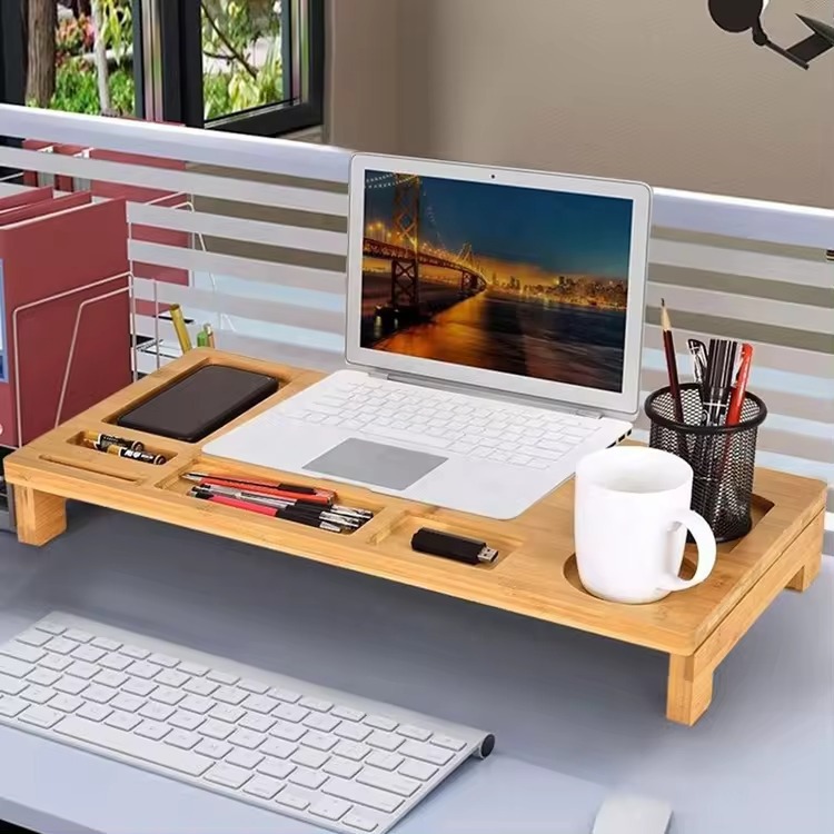 Computer Monitor Stand Riser Desktop Organizer Computer Wood Bamboo Monitor Display Stand Bamboo Monitor Laptop Accessories