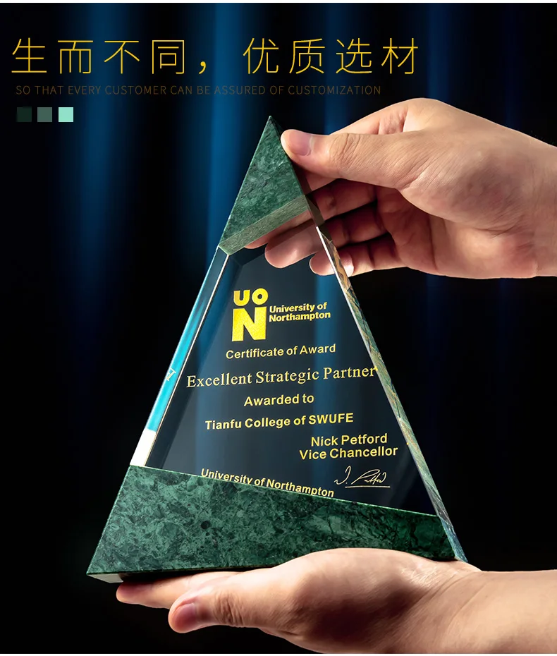 Crystal Trophy Customized Award Cheap Glass Blank Sports Triangle Emerald K9 Blank Crystal Glass Award Trophy for Personalized