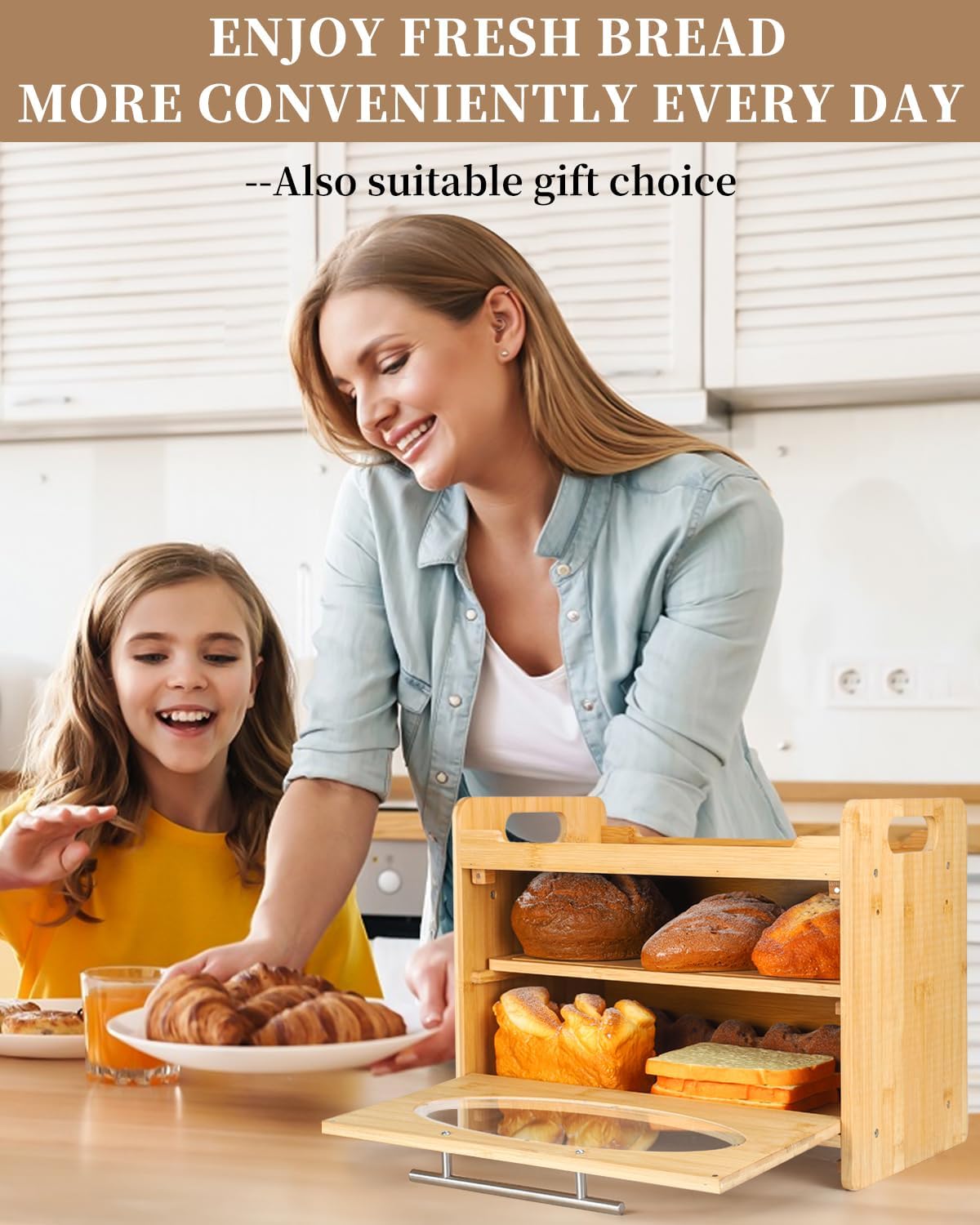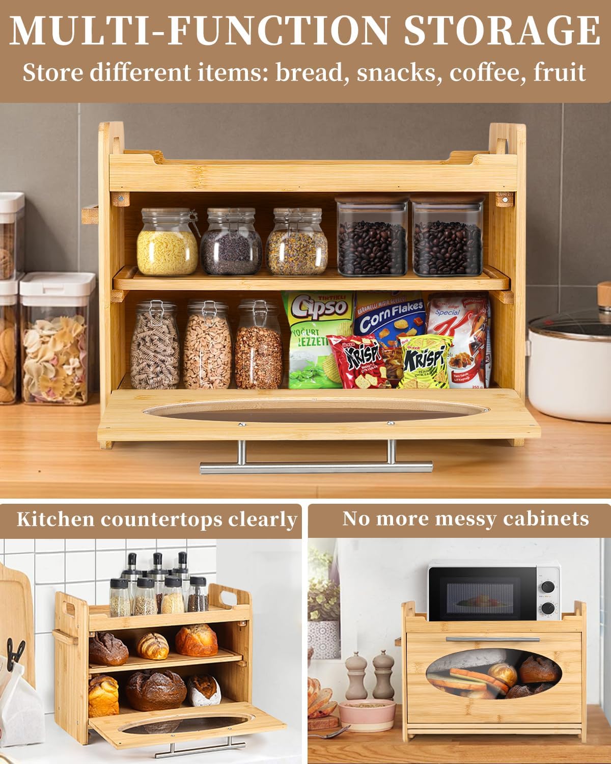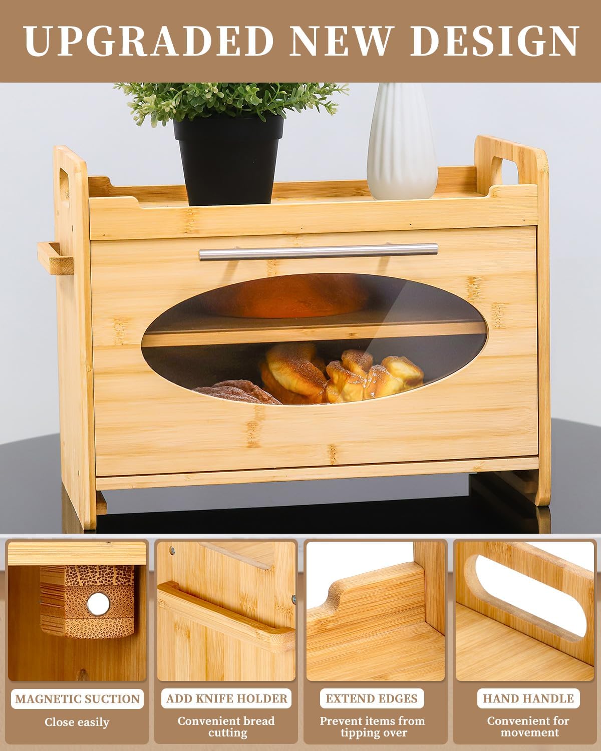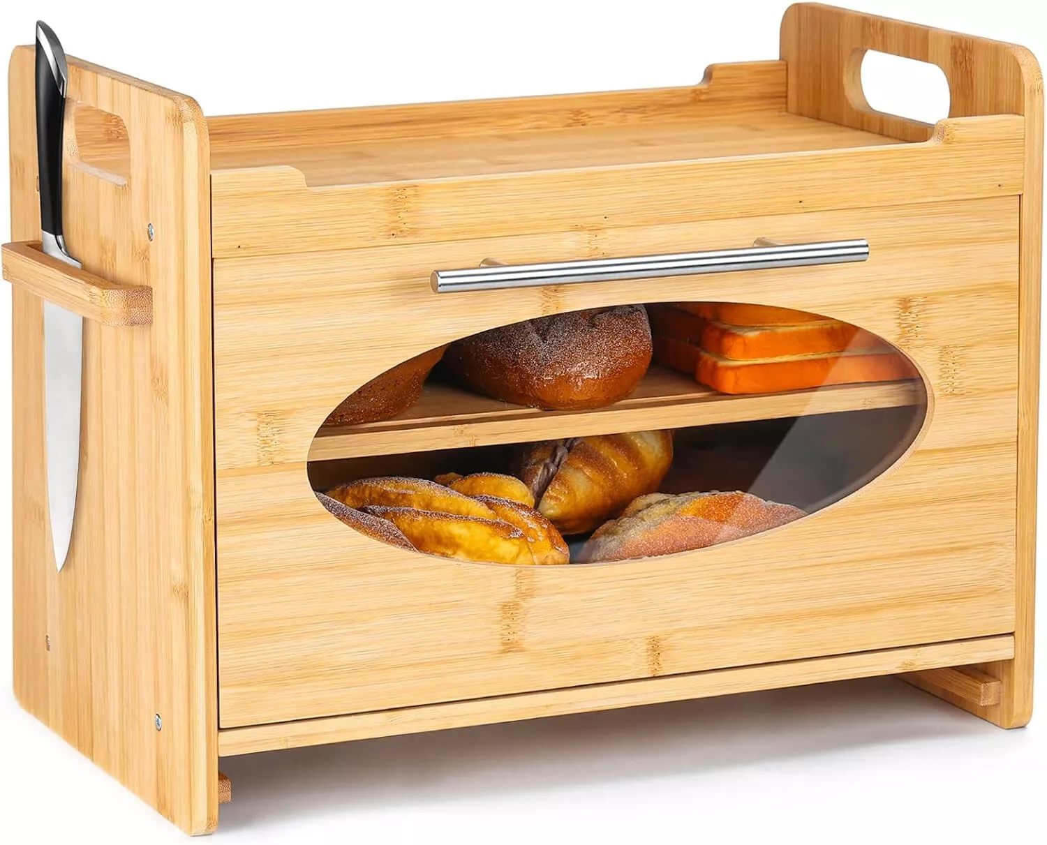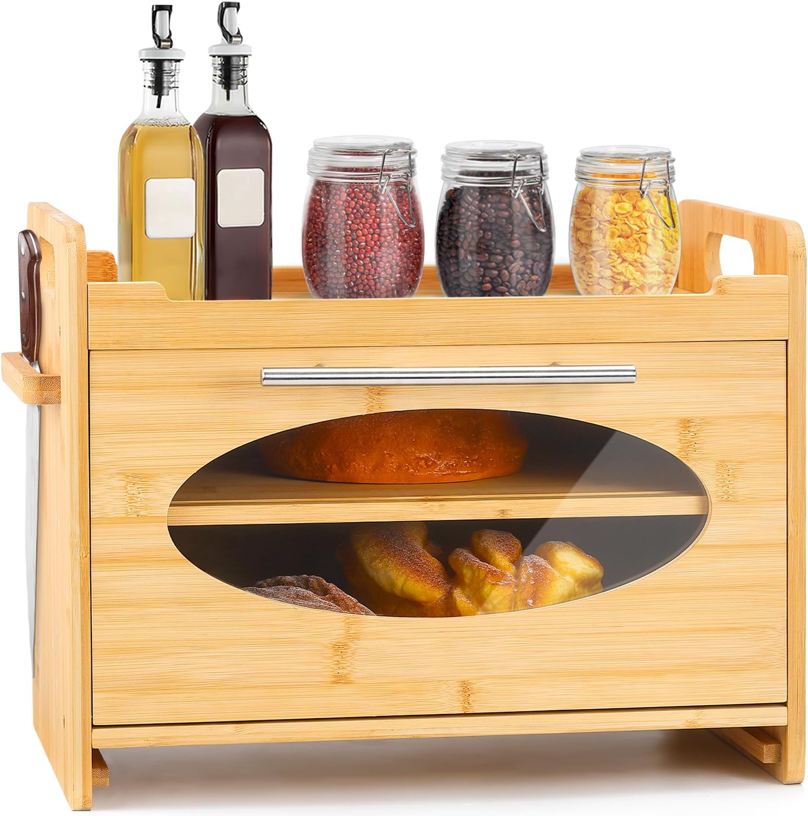 Custom Bamboo Bread Box with Clear Window Wooden Bread Box Breadbox Bread Bin