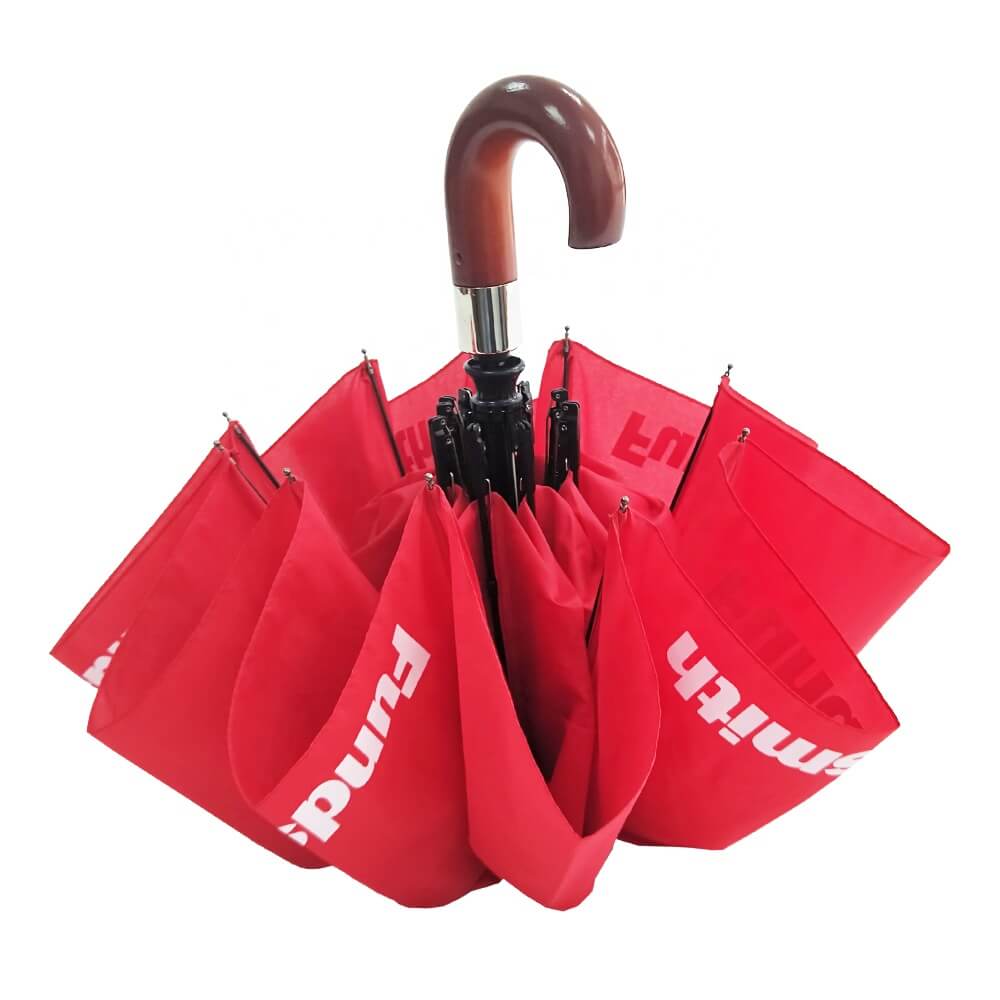 2. Use a better handle. We can customize the color and custom logo or design on the umbrella handle. Make the umbrella more advanced with the branded logo or design. Or use the Zinc alloy handle. Although Zinc alloy is heavy. it does make the umbrella more luxurious.