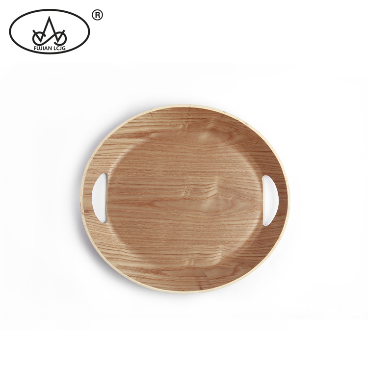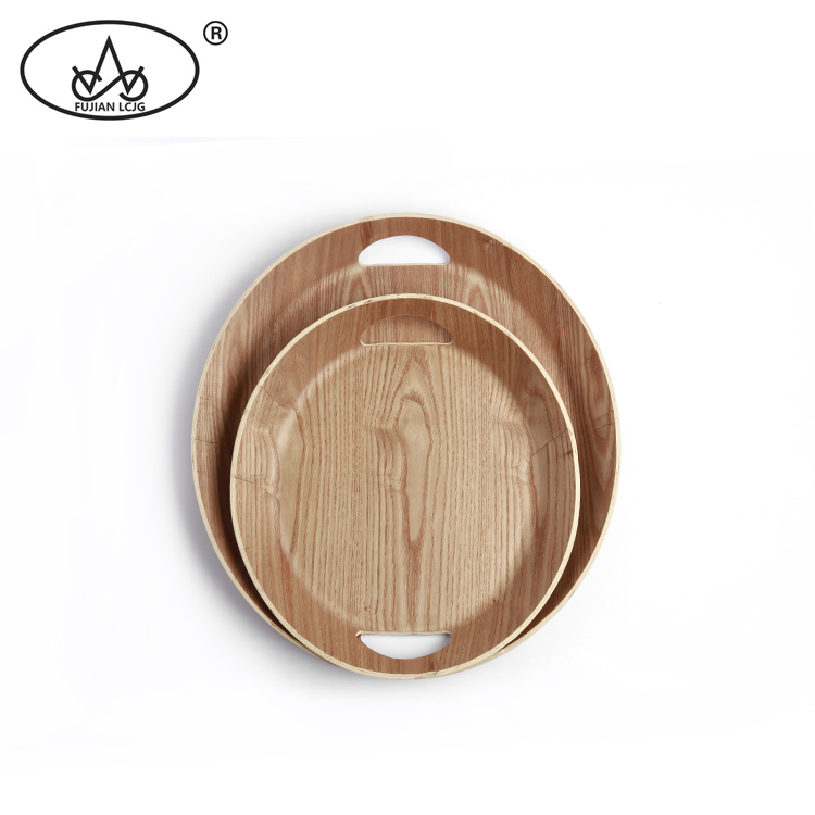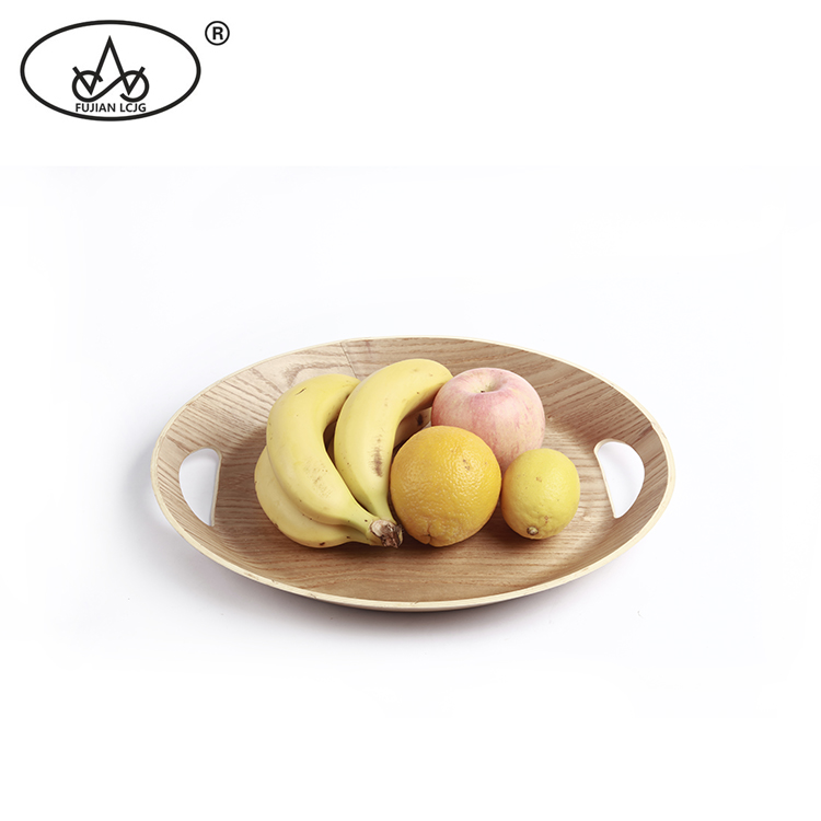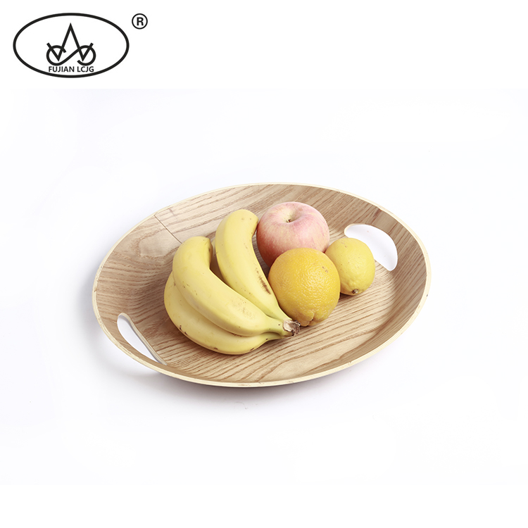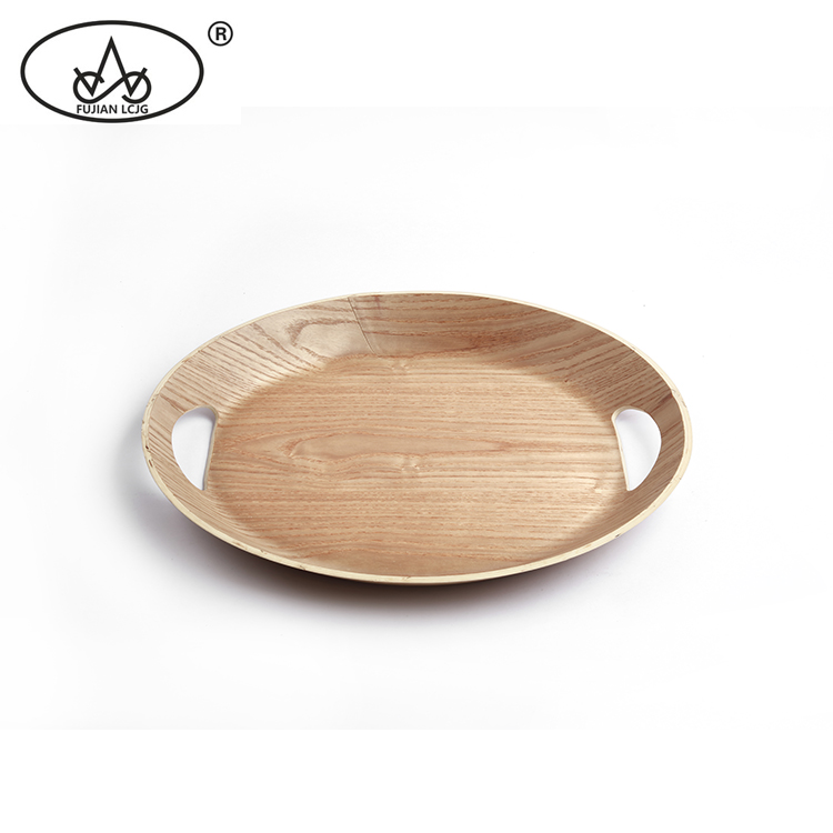 Custom design food grade willow wooden serving tray bent wood plywood tea coffee tray with handley
