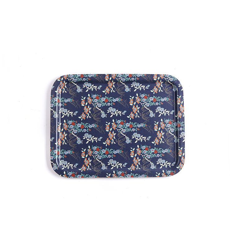 Custom Flower Print Rolling Tray Set Food Wooden Breakfast Serving Tray for Cafe Dinnerware Kitchen Accessories