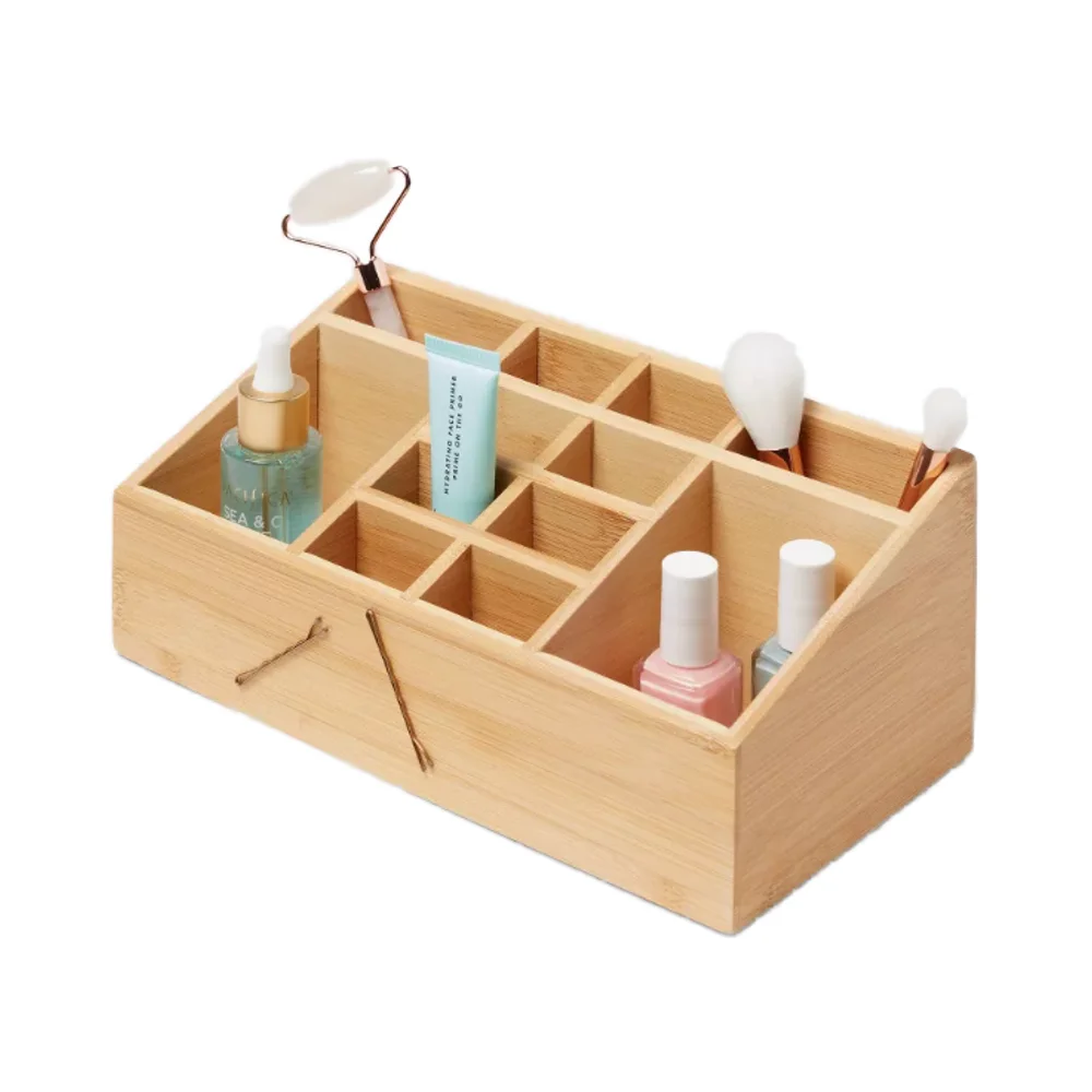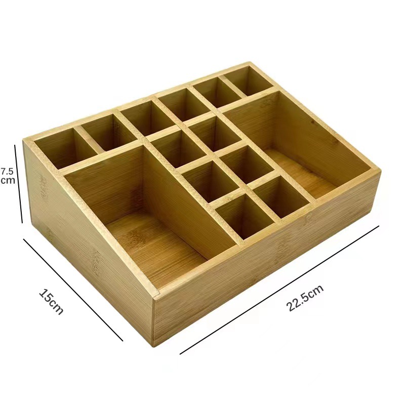CUSTOM Modern Bamboo Compartment Countertop Organizer Desktop Storage Organizer for Commercial Use for Hotels Home