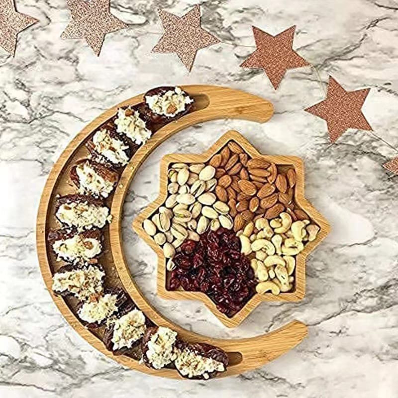 Custom Serving Platter Kitchen Dinner Plates Nuts Snack Chocolate Eid Mubarak Decor Ramadan Tray Bamboo Moon Star Serving Tray