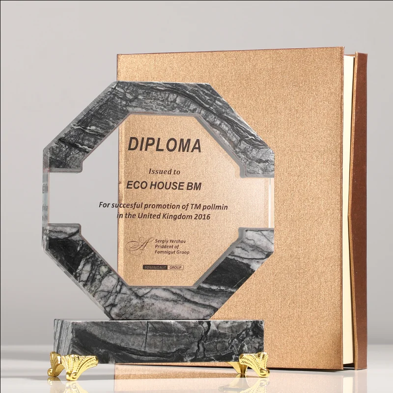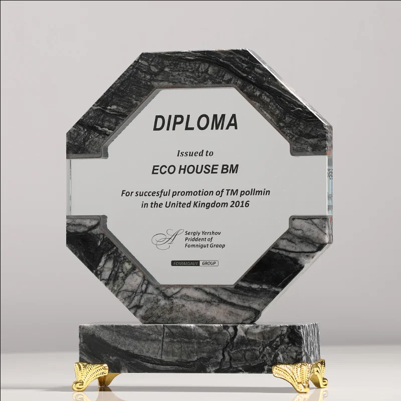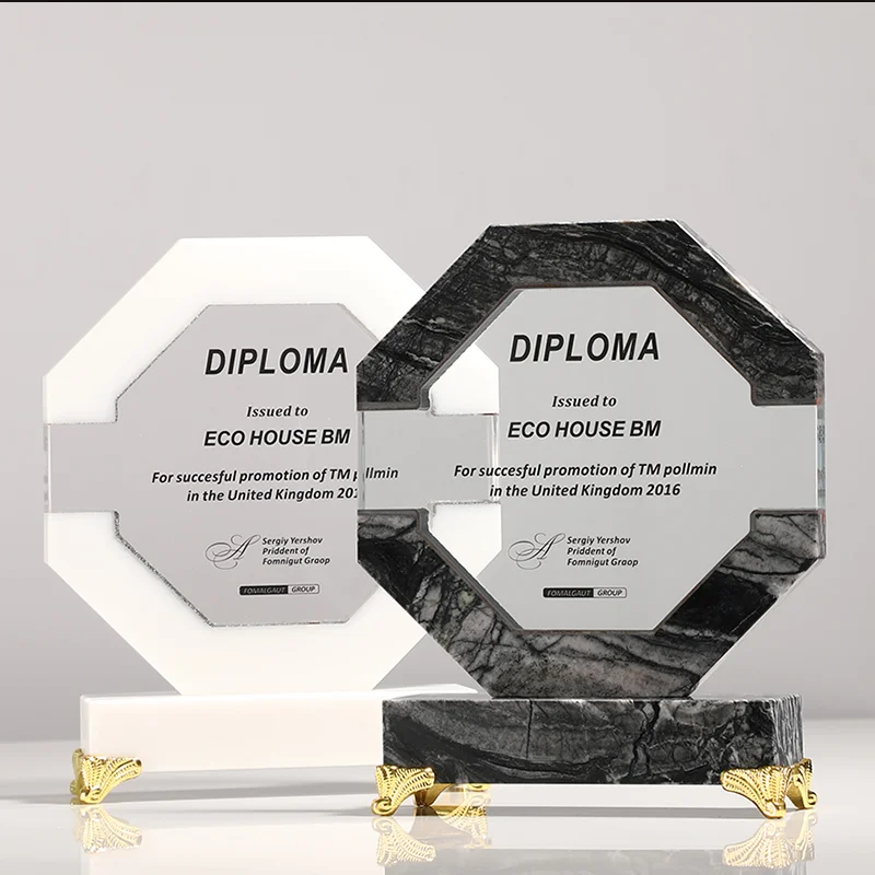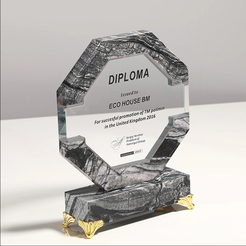 Custom Trophy K9 Sublimation Black Marble Octagon Rule Base Crystal Award Trophy Plaque Large Carving