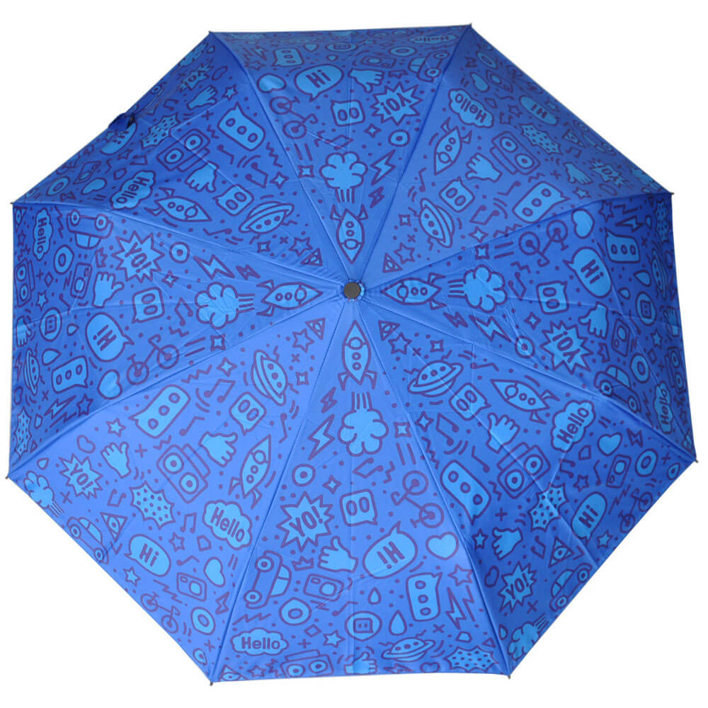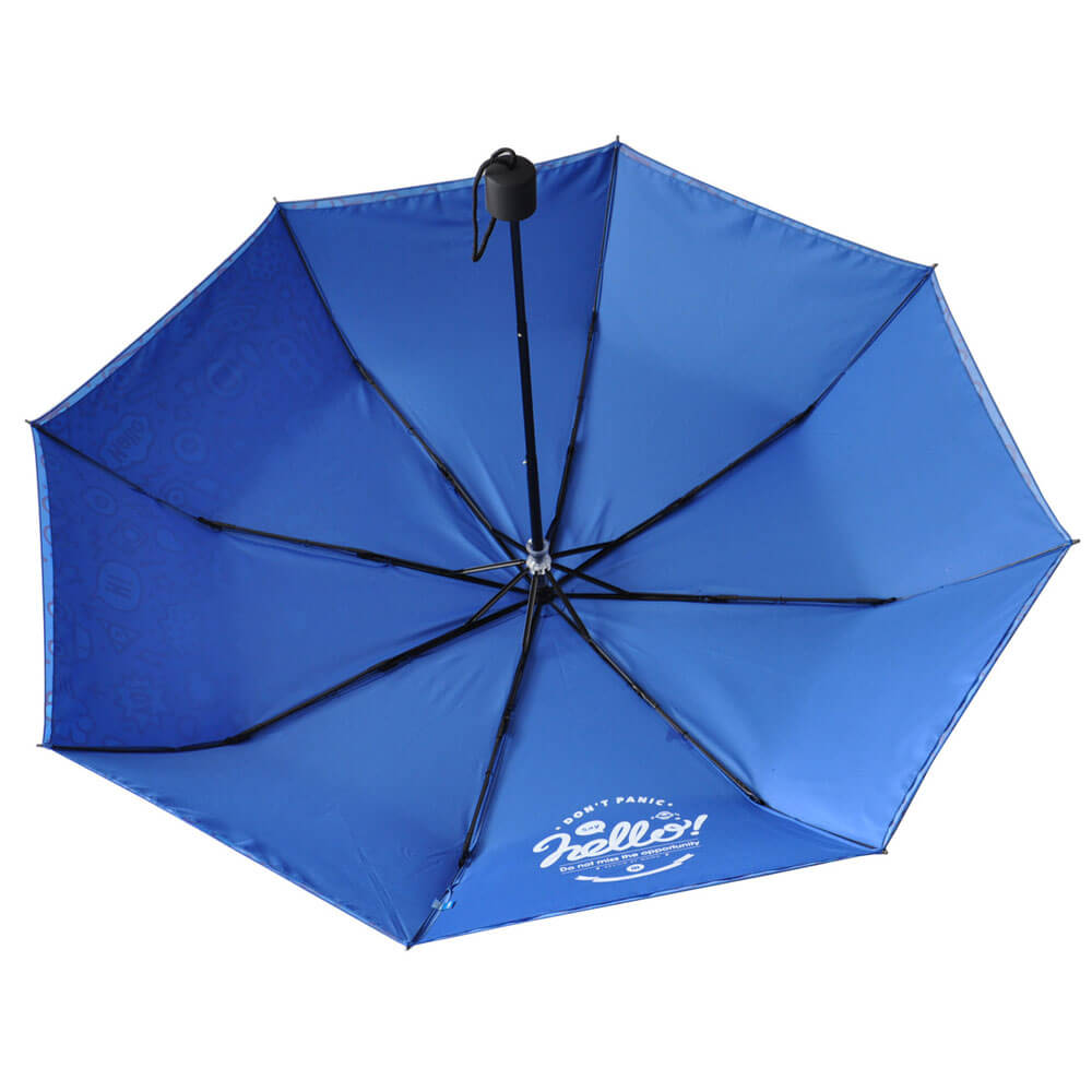 Custom logos printed on umbrella. Logo position: canopy. sleeve (pouch). handle. plastic top. pole (shaft). Custom logo color matching company logo color.