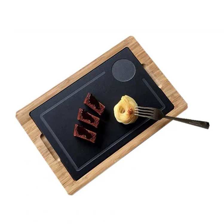 Customized Kitchen Stone Plates Rectangular Bamboo Cutting Serving Board Pastry Board Black Slate Cheese Board