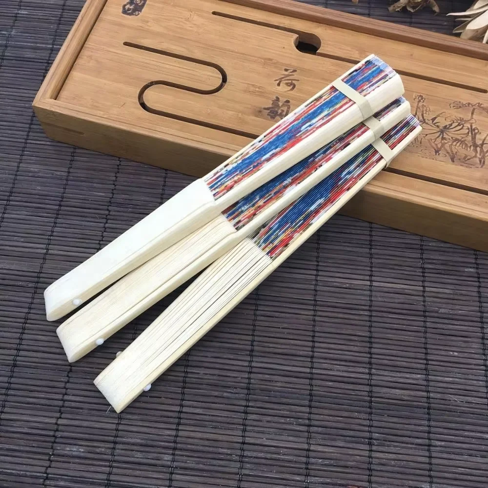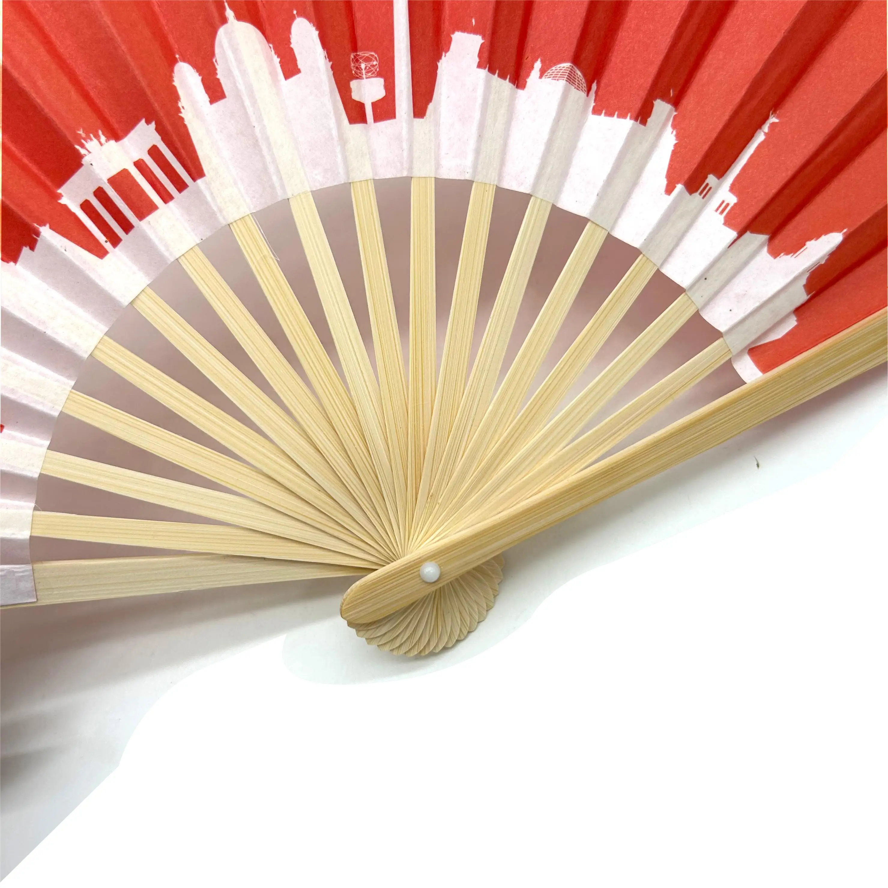 Double Printing Paper Fans With Bamboo Handle Personalized Wedding Durable Hand Fan Paper Folding Supplies Handheld Personal Fan