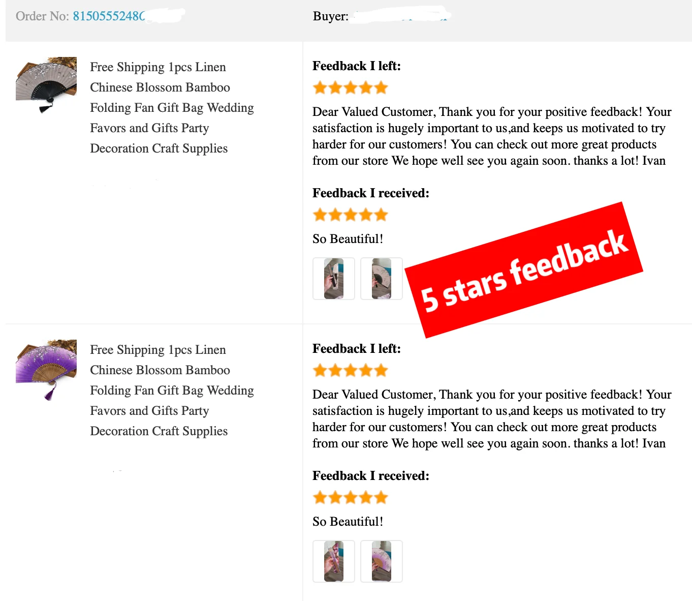 3. Quality and craft is very good. every customer ordered our custom hand fan were very happy and satisfied.
