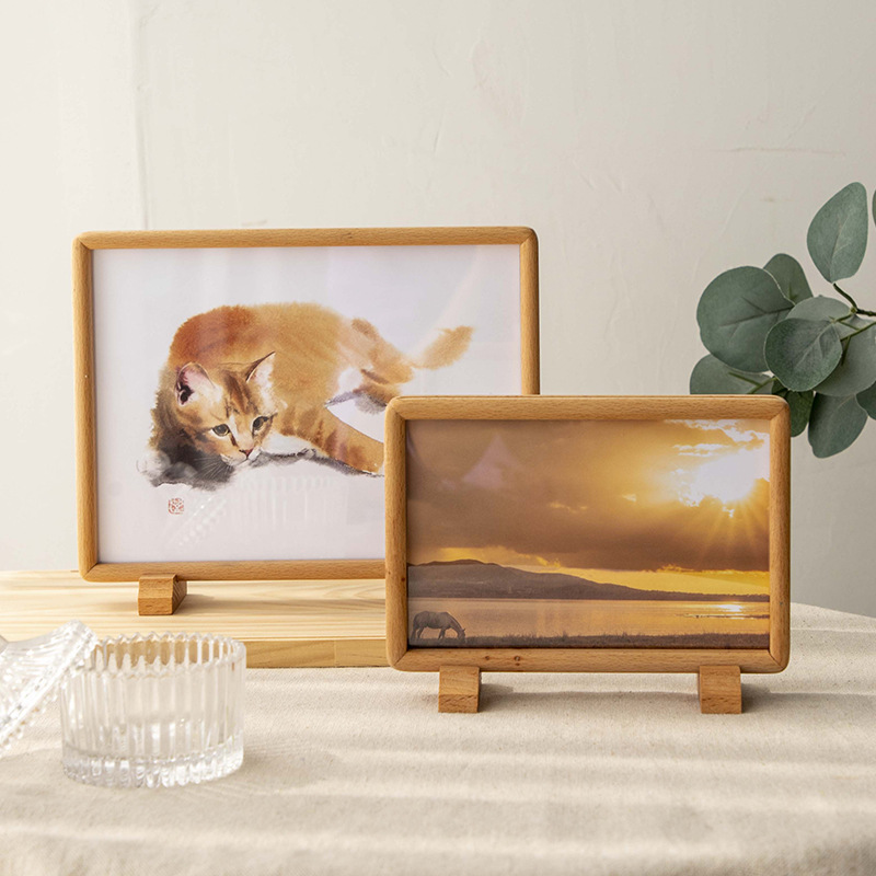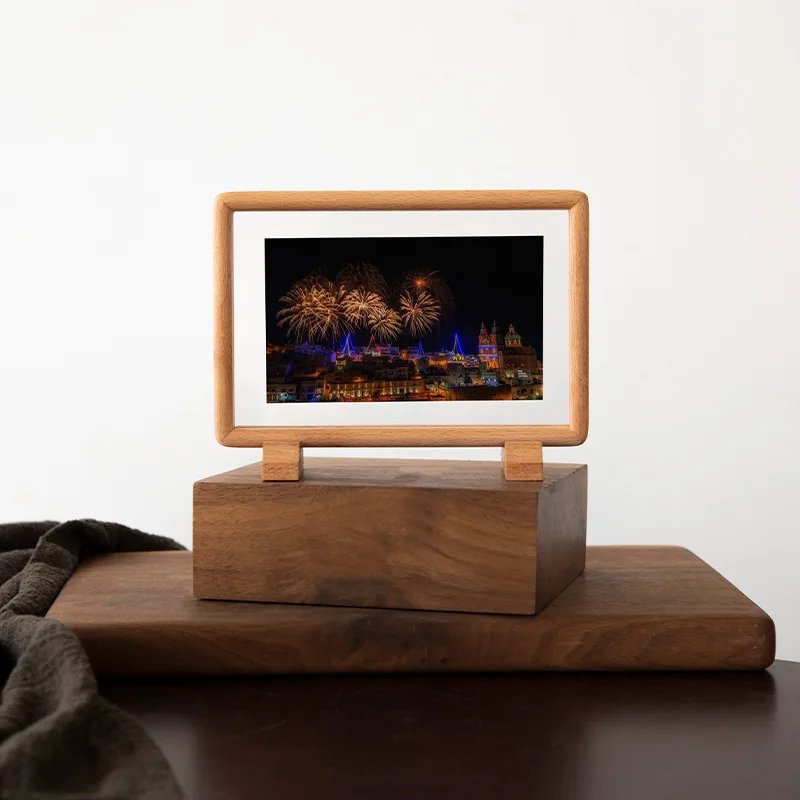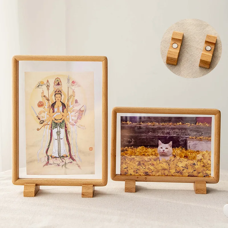 Double-Sided Transparent Photo Frame 6-inch 7 Solid Wood Magnetic Mortise round Wooden Picture Frame