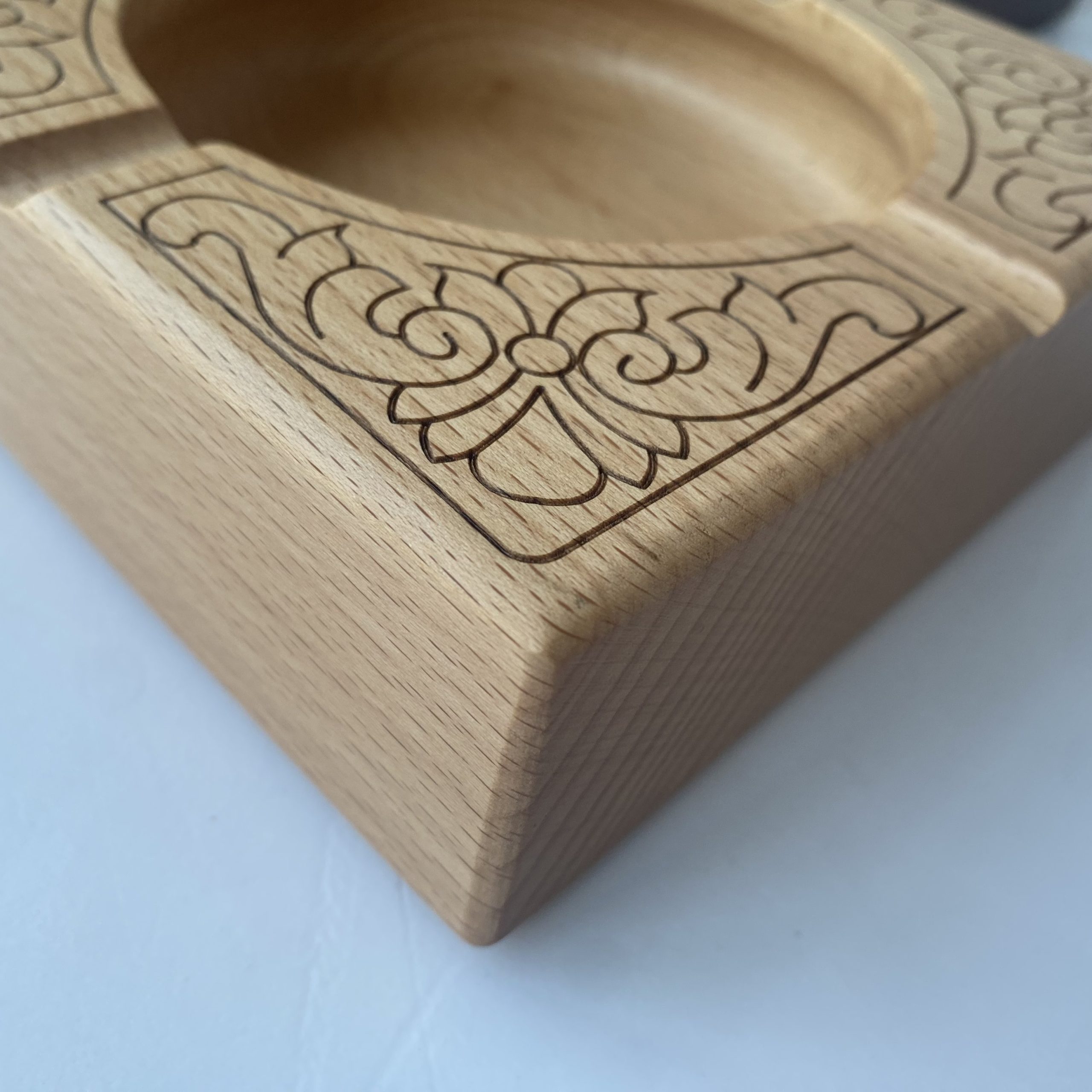 Durable Solid Wood 4 Slot Cigar Holder Large Beech Wood Cigar Ashtrays for Men Patio Wooden Cigar Ash Tray for Home