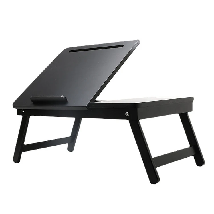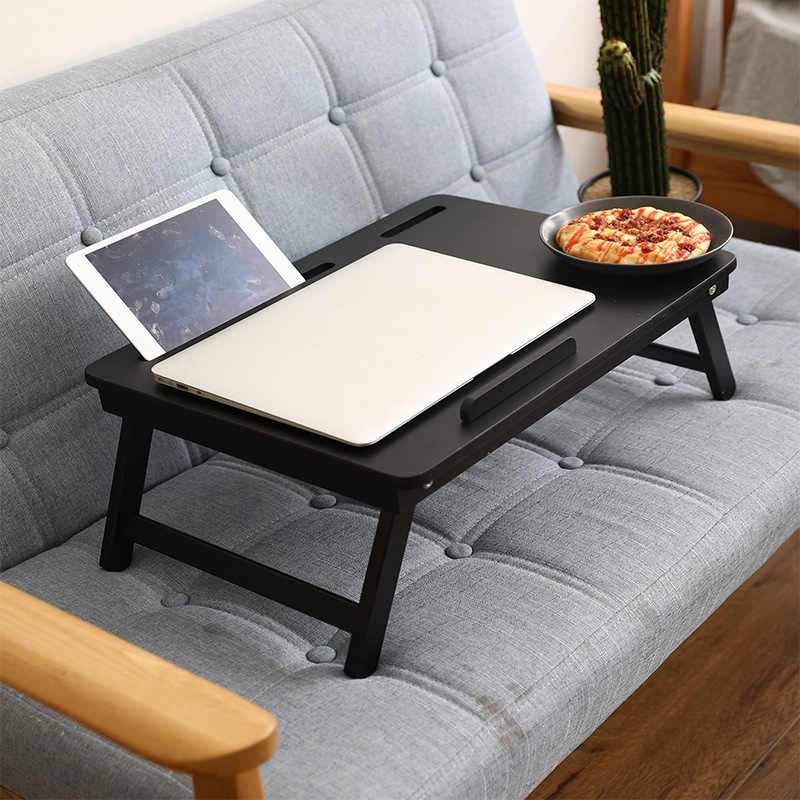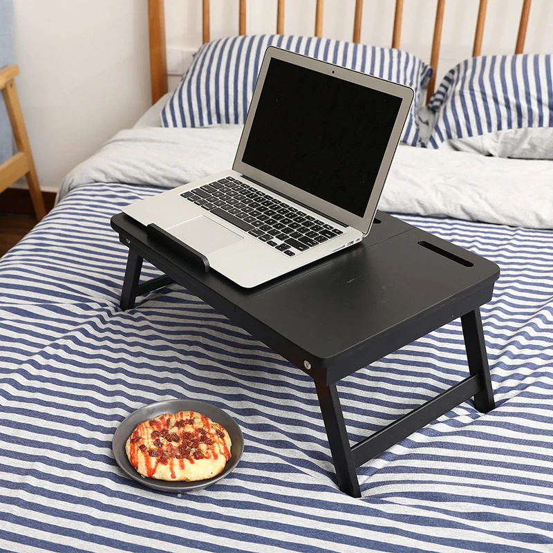 Eco-Friendly Bamboo Laptop Desk with Folding Legs Black Bed Tray Breakfast Table for Home Office Foldable Storage Furniture
